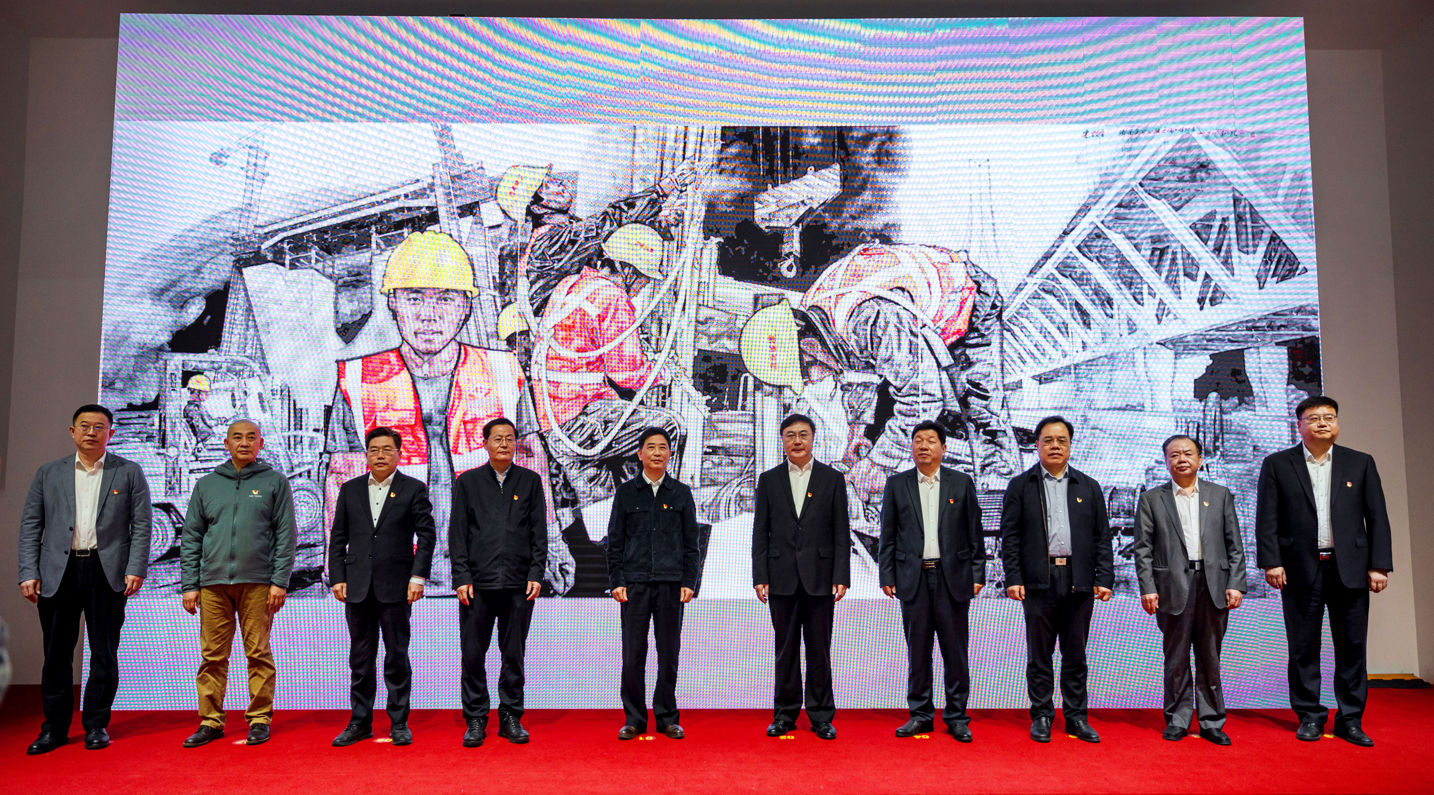 活动中,与会领导共同为《建设者—济南黄河公路大桥工程纪事》作品揭幕。