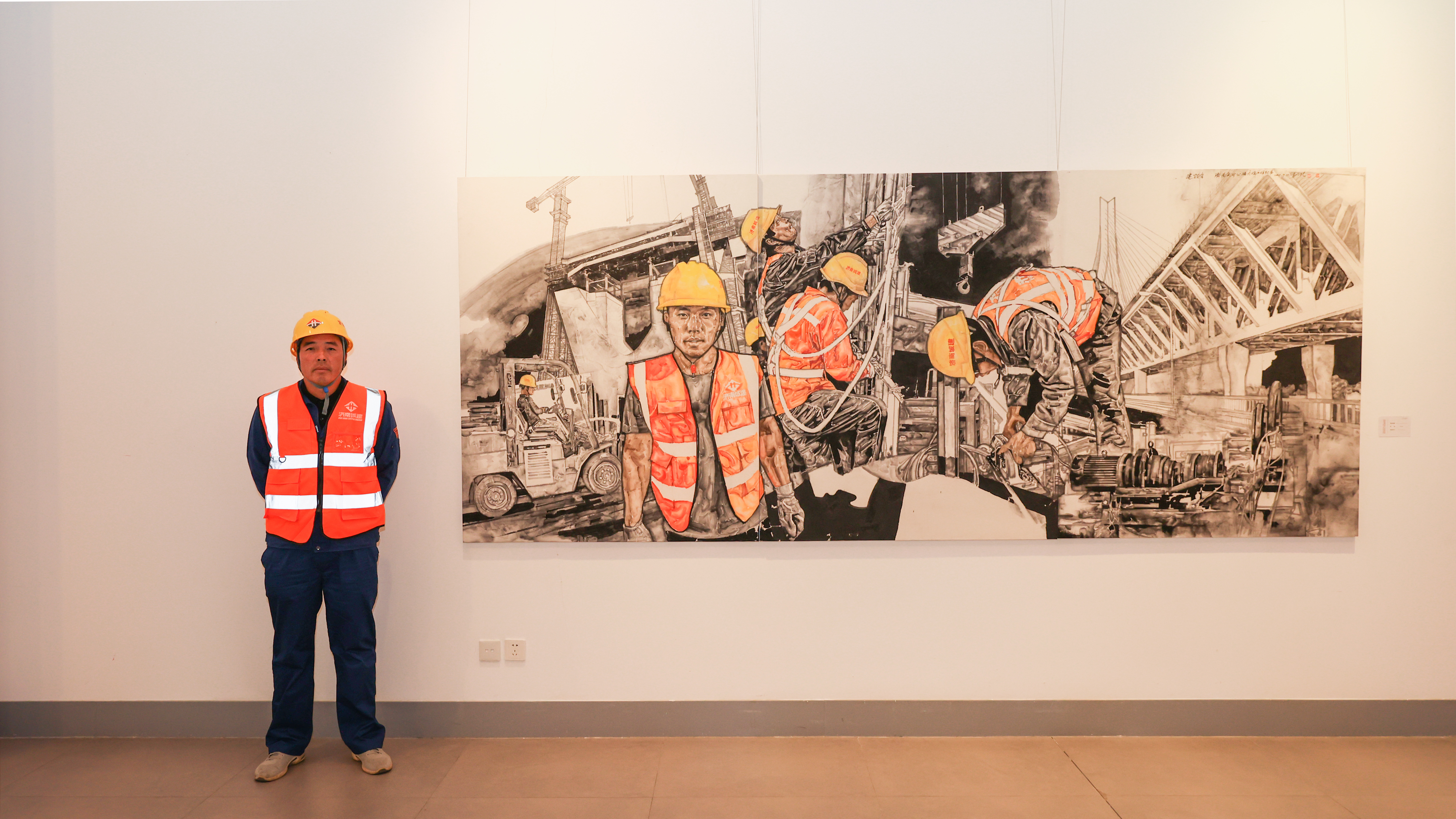 《建设者—济南黄河公路大桥工程纪事》作品原型人物董兴伟来自云南省大理市永平县,今年四月份跟随施工队伍来到济南,在项目上从事木工工作。“家里有亲戚在济南,但来济南工作还是第一次,每一次来都有不同感受,这次能亲身经历济南的超级工程感到很自豪”,董兴伟说:“城建集团业务遍布全国,像我一样很多外地工友也来到济南参与城市建设,我们也将干好本职工作为济南发展贡献一份自己的力量”。