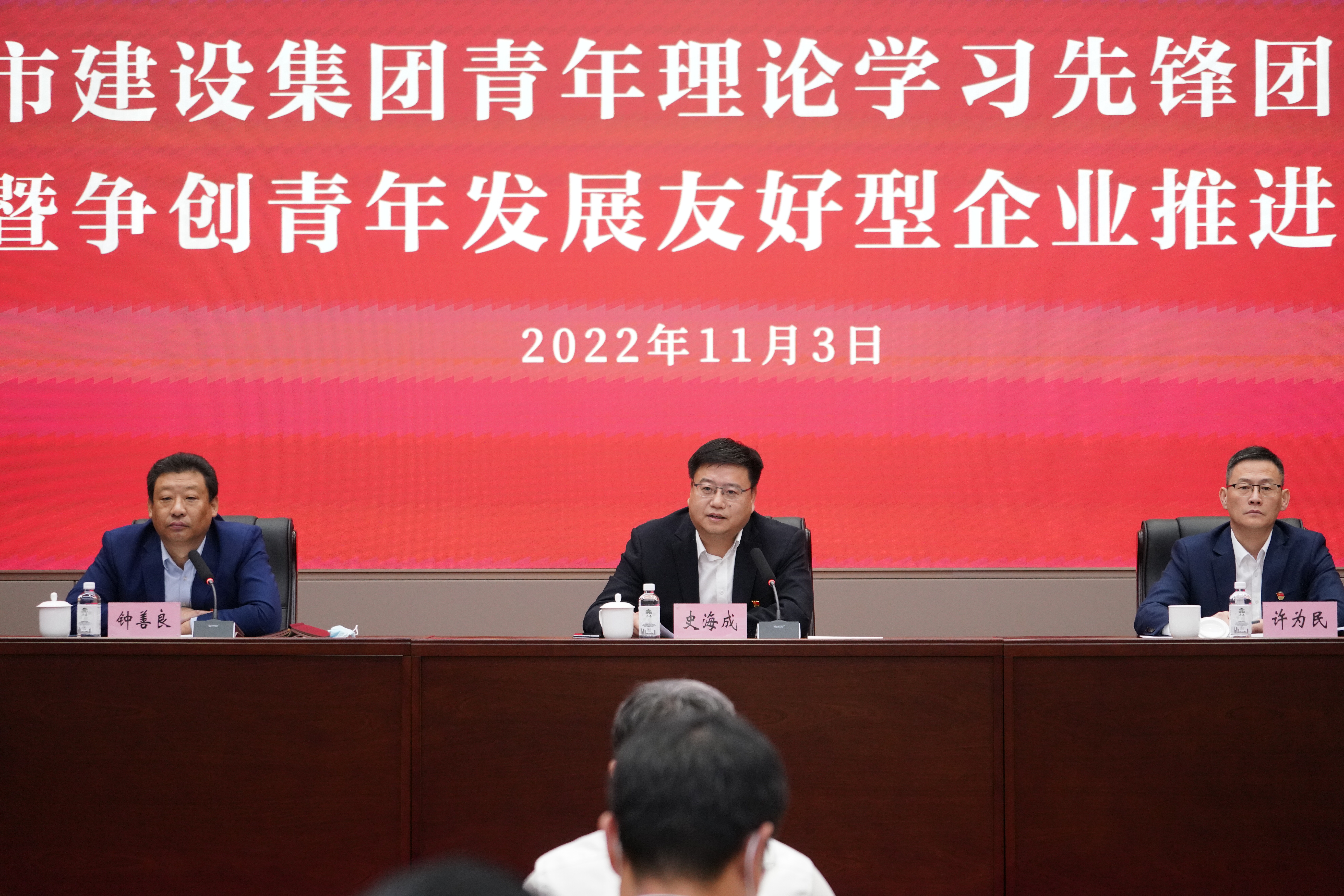 为深入学习贯彻习近平总书记关于青年工作的重要思想,掀起学习宣传贯彻党的二十大精神热潮,更好地帮助青年党员职工提升理论水平和素质能力,为集团转型发展注入青春力量,11月3日,建设集团召开青年理论学习先锋团成立大会暨争创青年发展友好型企业推进大会,集团党委书记、董事长史海成出席会议并讲话,集团党委副书记、总经理许为民为先锋团授旗,集团党委副书记钟善良主持会议。