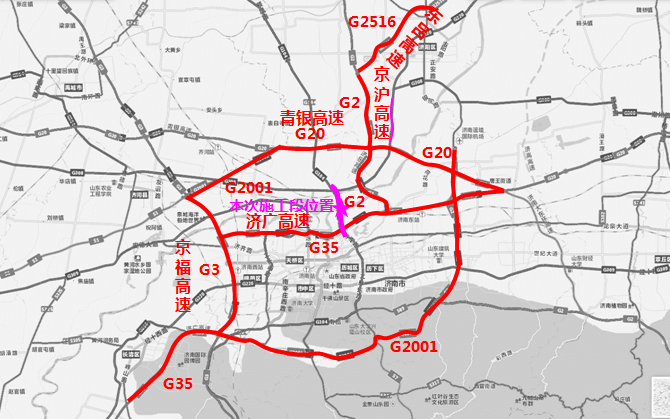 施工期间,高速公路南北向车辆可通过G2516(东吕高速)—G2(京沪高速)—G35(济广高速)—G3(京福高速)通过施工区域;东西向车辆可通过G35(济广高速)或G2001(绕城高速)—G20(青银高速)通过施工区域。