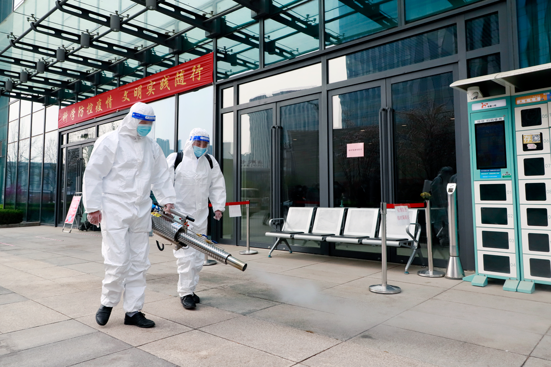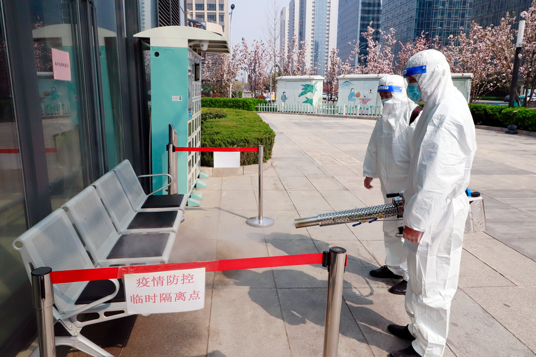(采用全自动脉冲动力水雾烟雾弥雾机对西城大厦、地下停车场、避难通道等公共区域进行高温蒸汽专业消杀,并在西客站东广场南北车库高铁出入口安装热成像测温一体机,进一步加强对重点区域、重点部位疫情防控。)