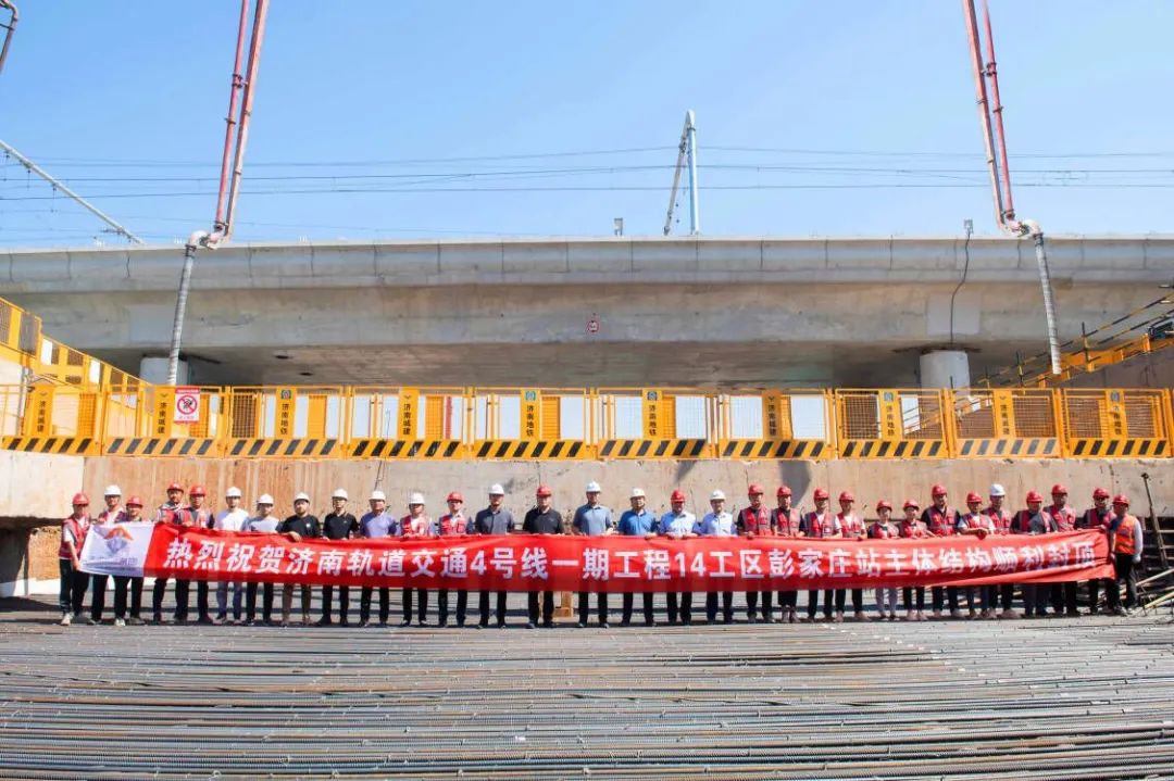 5月21日,随着最后一仓顶板完成混凝土浇筑,由建设集团所属济南城建集团公司承建的济南轨道交通4号线一期工程14工区彭家庄站车站主体结构封顶,为4号线同期展开施工的所有车站中实现封顶的首座车站。