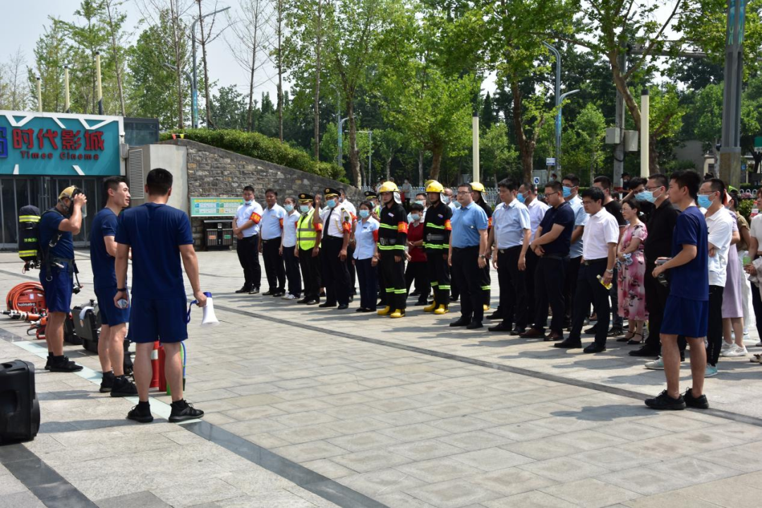 消防演练模拟城发广场出现火情,现场迅速启动应急预案,指挥部组织调度应急抢险组、安全保卫组、人员疏散组、医疗救护组分头行动,完成现场灭火、人员撤离、物资转移、伤员救治等工作。