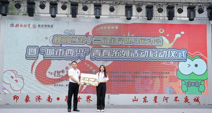 活动现场,济南市体育局群体处处长杨本升为印象济南·泉世界授予“济南市青春活力示范街区”,ok138cn太阳集团古天乐万融置业有限公司与济南日报报业集团体育事业发展中心签署共同打造“城市西兴青春系列活动”合作书。