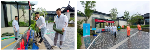通过此次演练,进一步提高万融置业所有项目应急救援指挥组应对汛情的应急反应能力,提前备齐防汛物资,建立险情报告抢险机制、设立防汛物资库,完善项目预报、预警、预防和协同配合能力,全力保障施工人员生命及财产安全的前提下,促进安全生产。