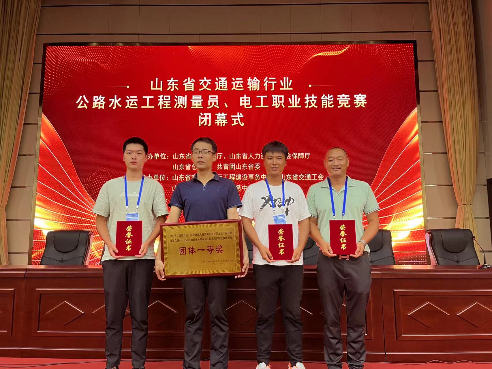 8月28日,金朝公司员工赵凯同志荣获省“技能兴鲁”职业技能大赛暨山东省智慧交通工程检测技能竞赛——交通运输行业公路水运工程测量员技能竞赛决赛“个人一等奖”,他所属的济南市团队获得“团体一等奖”荣誉称号。
