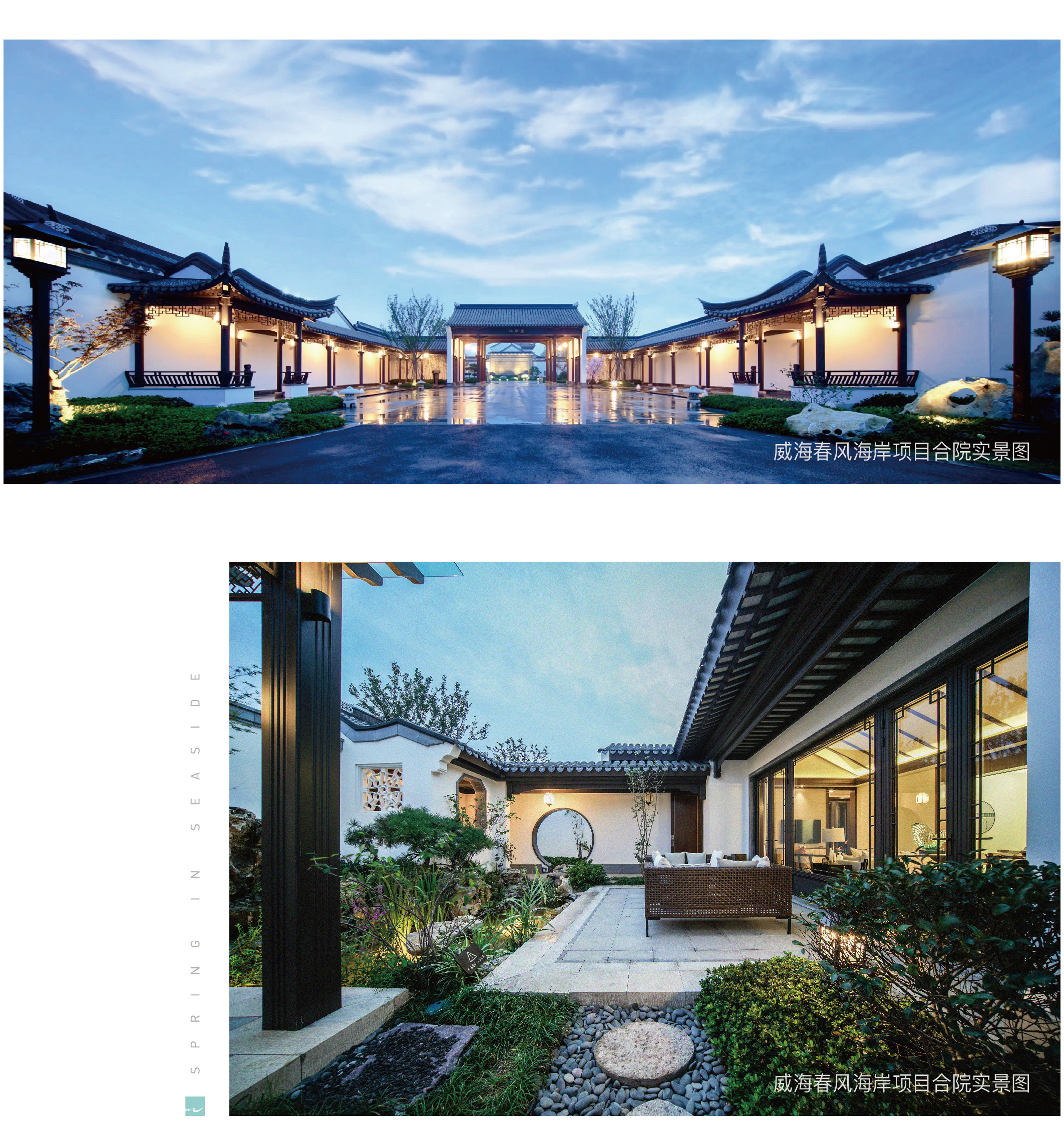 威海春风海岸推出中式合院、高层住宅两大经典产品系。建筑面积约124-193㎡的海上合院,白墙黛瓦、亭台楼阁,一席滨海中式院落,为家人勾勒出一幅屋前檐后的清浅时光,一梦回味江南,梦醒面朝大海,美好生活“如院以偿”。