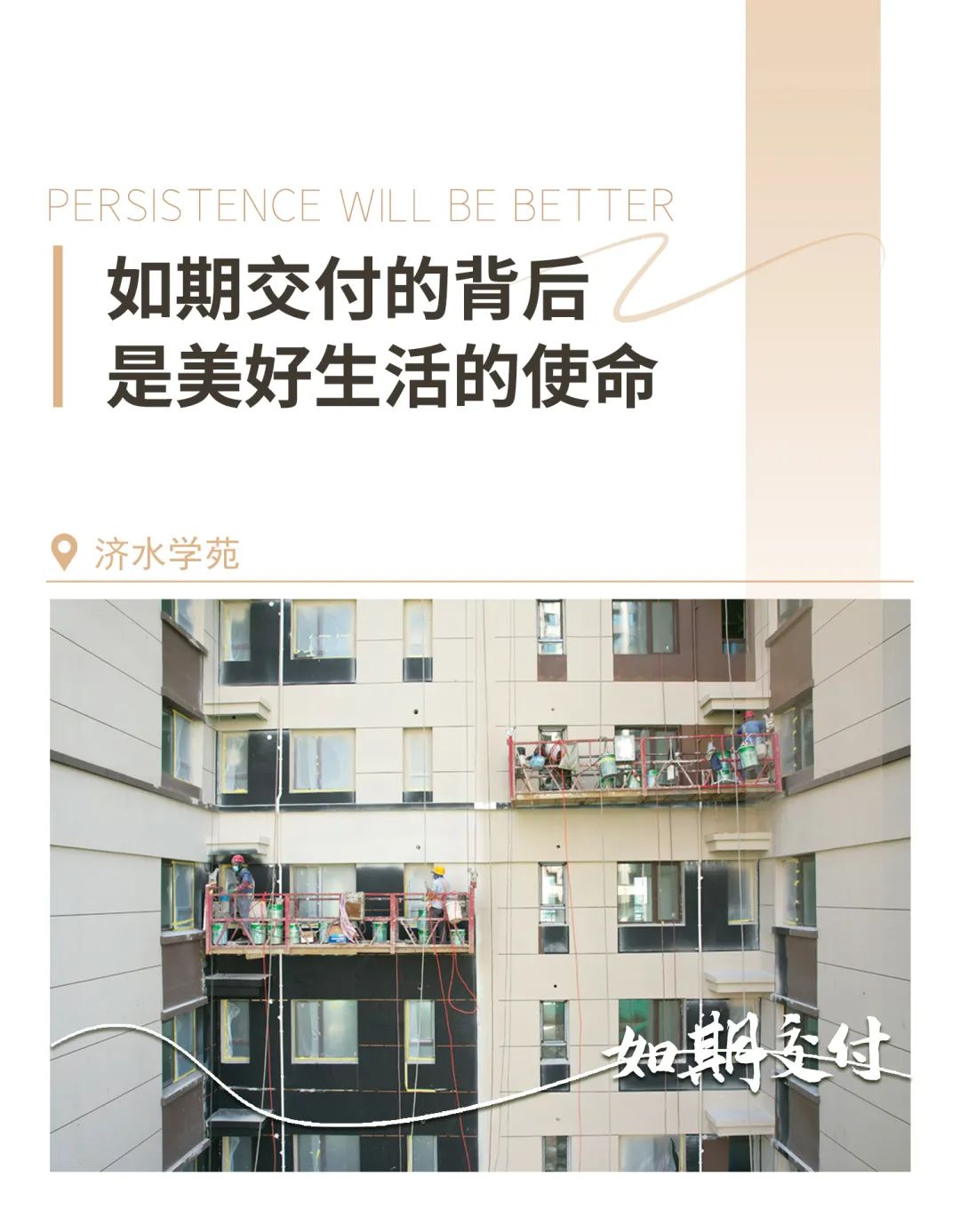 克服疫情等不利因素,迎难而上、通力合作,7个多月、200余个日日夜夜、5000多个小时,坚守一线决战攻坚,多举措保工期、保进度、保品质,顺利完成济水别苑一期各项建设工作。