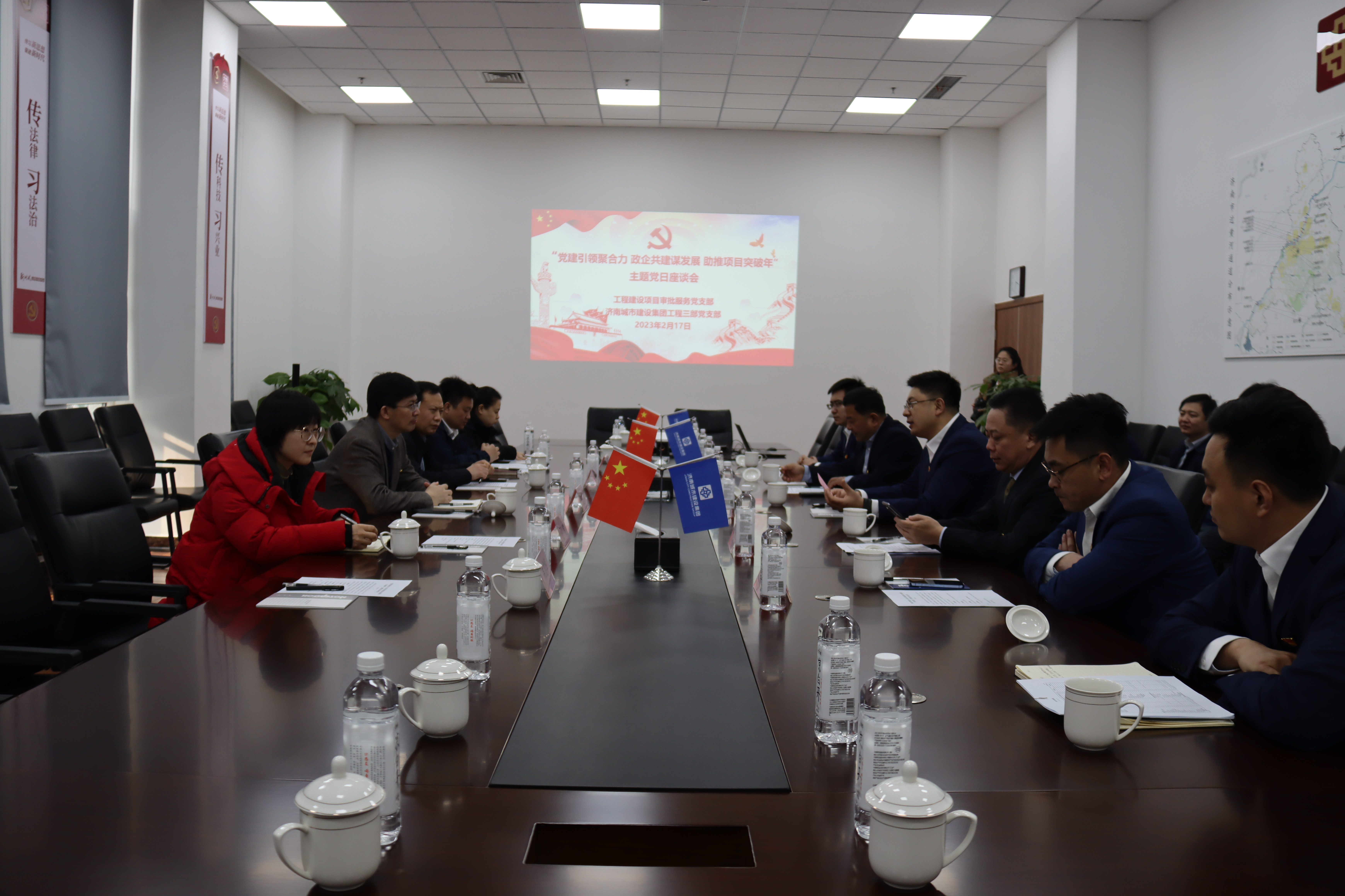 为切实有效发挥党建引领作用,共建政企双方搭建交流融合平台,共促工程建设,2月17日,市行政审批服务局工程建设项目审批服务党支部与ok138cn太阳集团古天乐工程三部党支部组织开展“党建引领聚合力 政企共建谋发展 助推项目突破年”主题党日活动。
