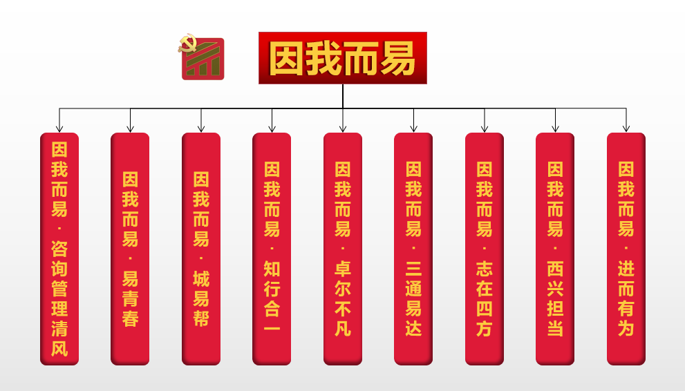 近年来,易方达公司按照建设集团党委“1+N+n”品牌创建总体布局,把党建品牌与企业文化,项目管理、监理、全过程工程咨询主业,行业数字化转型等深度融合,形成“因我而易”党建品牌为“1”,以点带面,充分发挥自身优势,集中力量,挖掘资源,先后培育出“因我而易·咨询管理清风”廉洁文化品牌,“因我而易·易青春”团委品牌,“因我而易·城易帮”“因我而易·志在四方”等支部品牌,形成亮点纷呈、百花齐放的“1+9”的党建品牌矩阵。