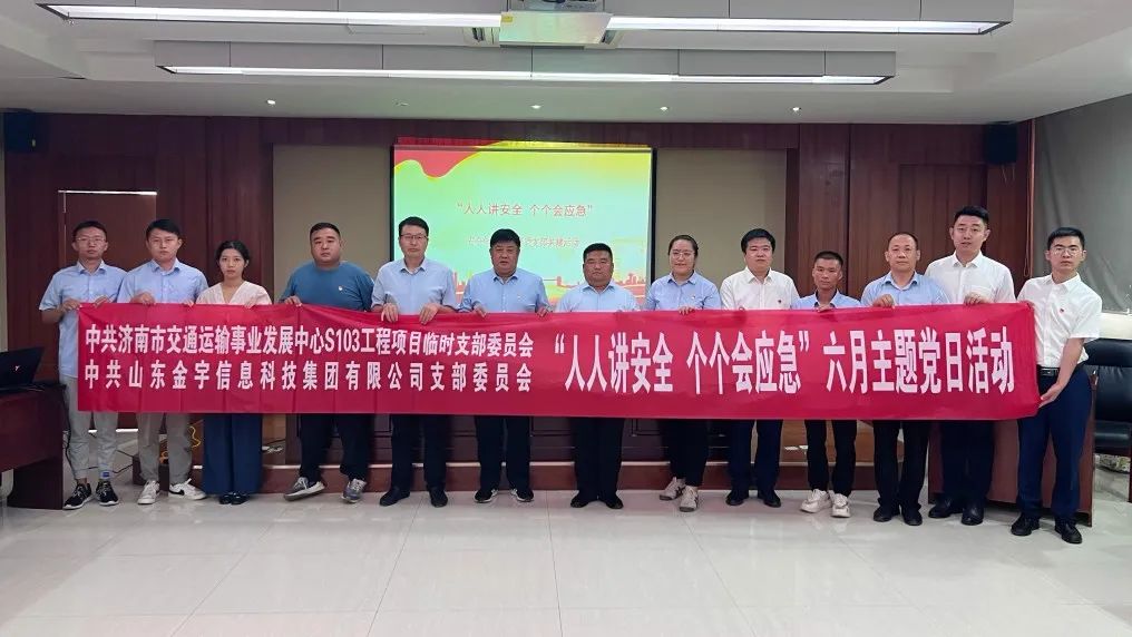 为了让安全生产意识和理念深入人心,6月25日,山东金宇信息科技集团有限公司党支部与济南市交通运输事业发展中心S103工程项目临时党支部开展共建,共同举办“人人讲安全·个个会应急”安全知识竞赛暨6月主题党日活动,S103工程项目相关参建单位党员、职工代表参加本次活动。