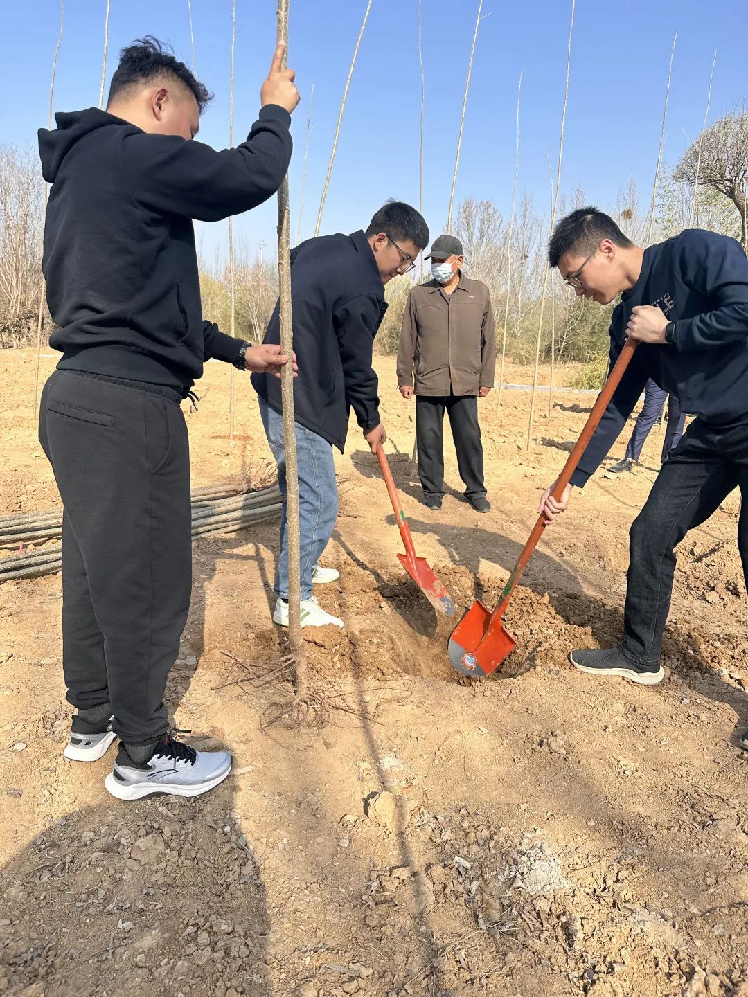 为牢固树立和践行绿水青山就是金山银山的理念,共建绿色生态泉城,在第45个植树节来临之际,建设集团各部室、子公司响应集团倡议,结合实际情况,积极开展形式多样的义务植树活动,以党建带团建,以队伍建设推动实际工作,通过支部共建、青年交流、志愿服务、团队建设等丰富多彩的植树活动,争做生态文明的传播者、实践者和推动者,为建设“强新优富美高”新时代社会主义现代化强省会贡献力量。