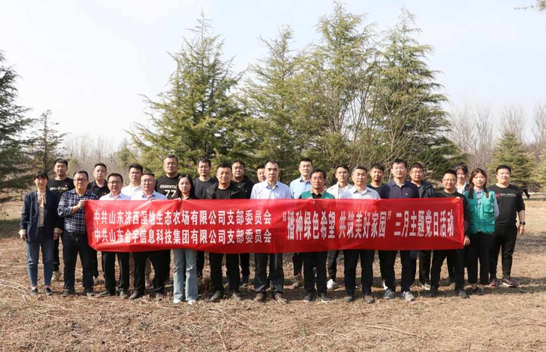 山东金宇信息科技集团党支部与济西湿地生态农场党支部联合开展“播种绿色希望 共筑美好家园”义务植树主题党日活动
