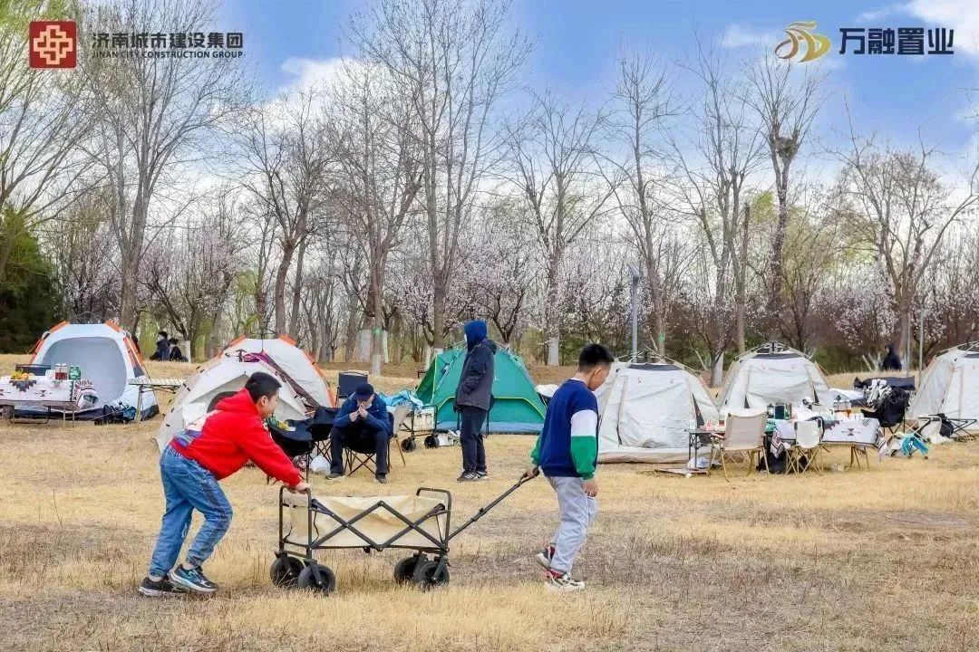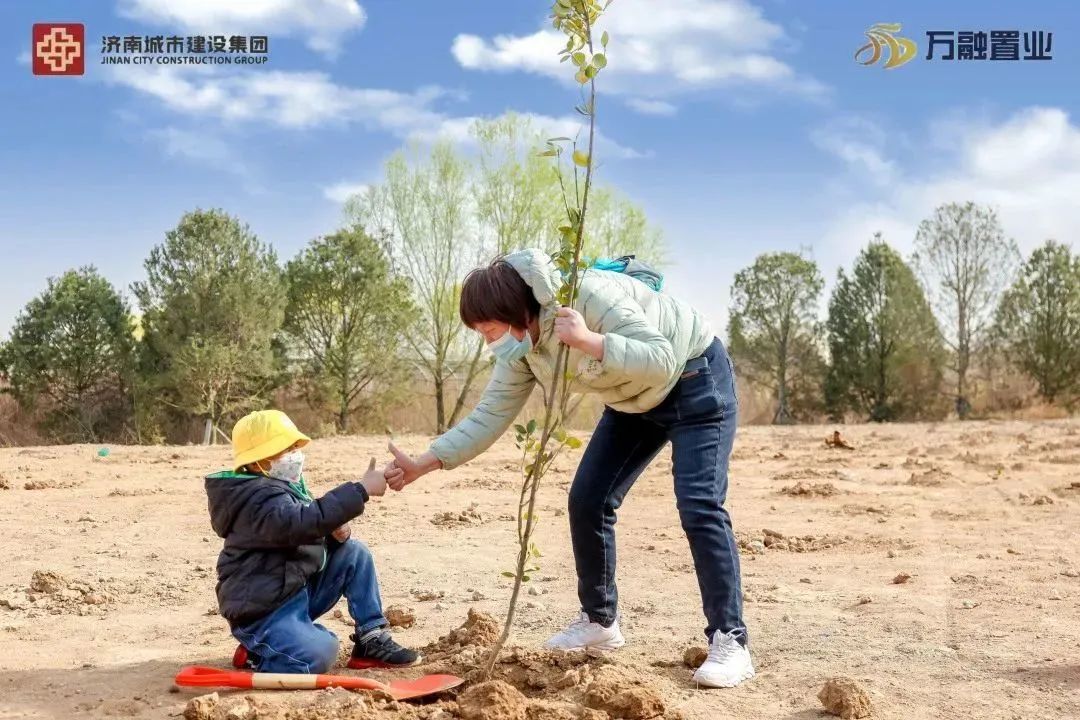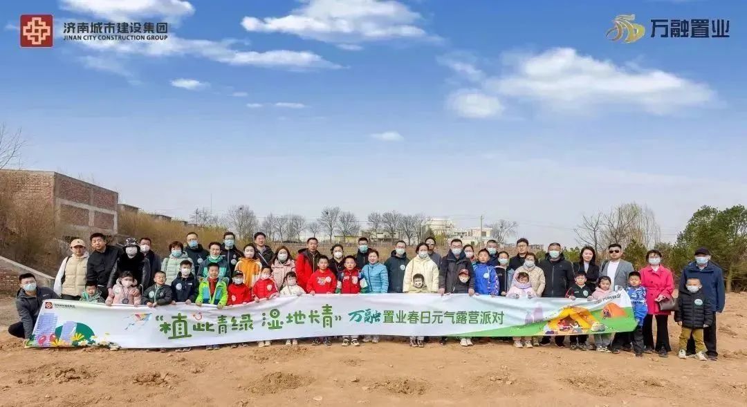 万融置业有限公司联合济南市城乡建设发展服务中心开展义务植树活动,并组织业主开展“植此青绿 湿地长青”露营活动