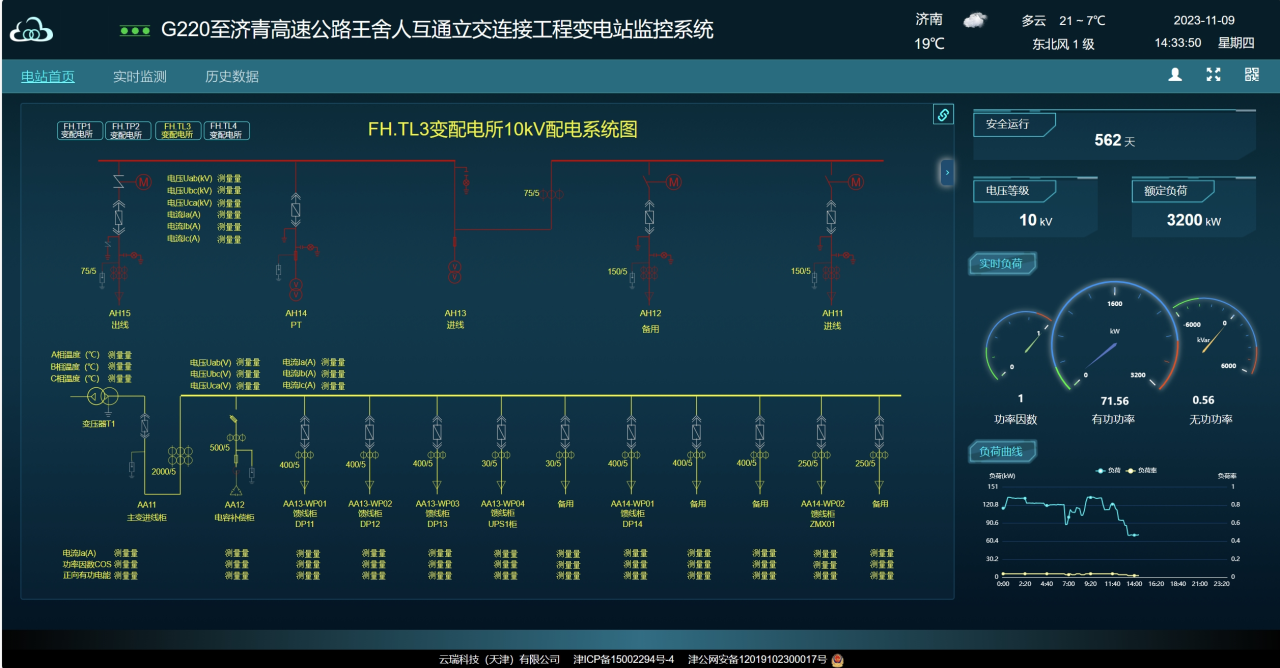 济南黄河凤凰大桥通过Reefala变电站智能云监控系统,实时监测电力系统数据,进行全面的运行状态监控,Reefala系统通过智能分析,及时为管理者提供预警和响应机制。同时,系统具备强大的数据存储和回溯功能,用户可以查看历史数据,对变电站的运行状况进行深入分析,为凤凰大桥项目运营带来了更加安全、可靠、高效的保障。