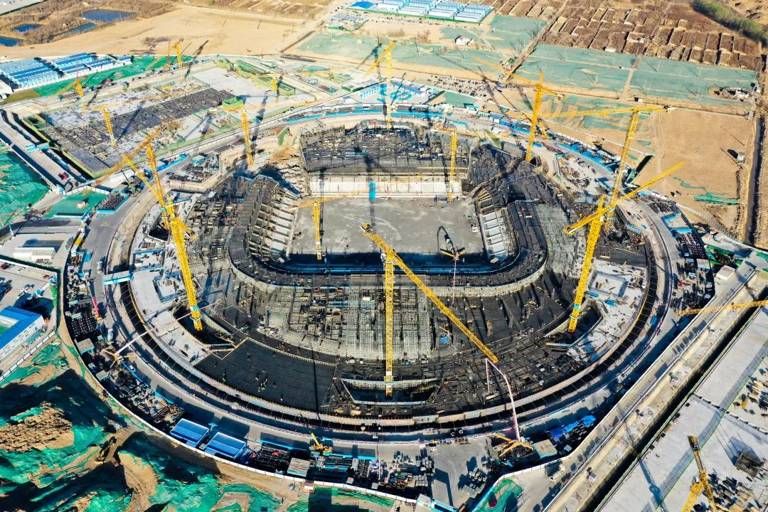 专业足球场结构形式复杂、专业覆盖面广、工期要求紧、标准要求高,工程建设指挥部带领各参建单位齐心协力,创新工作模式,通过矩阵式职能组、现场管理网格化等方式,从安全建设、质量管控、创新创优、BIM指导施工等方面有序推进工程建设。自2022年7月份开工建设,高峰作业期现场人员可达1600余名,春节期间更是带头带班不放假、不停工,大干快上,全力确保工程保质保量地实现既定节点目标。