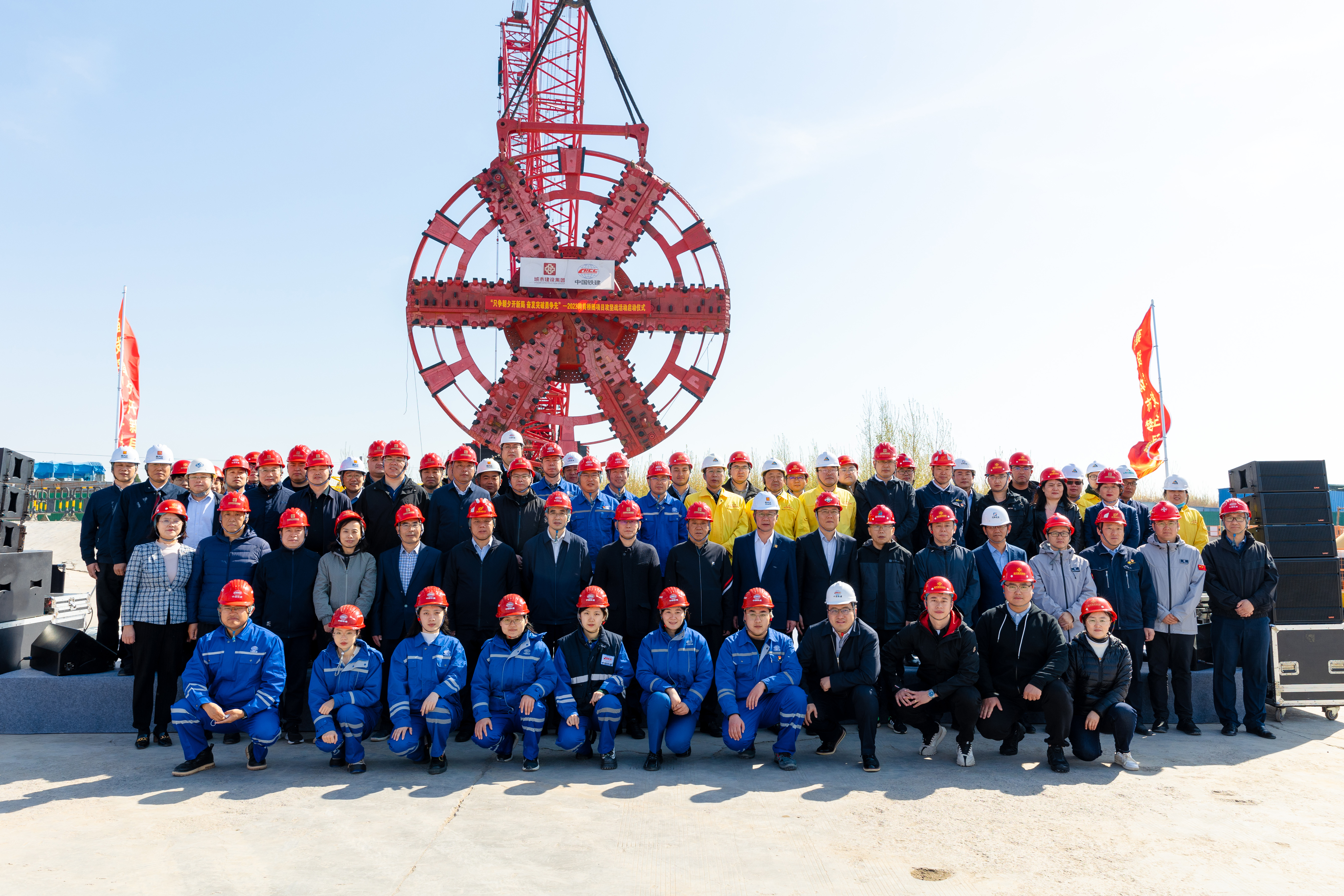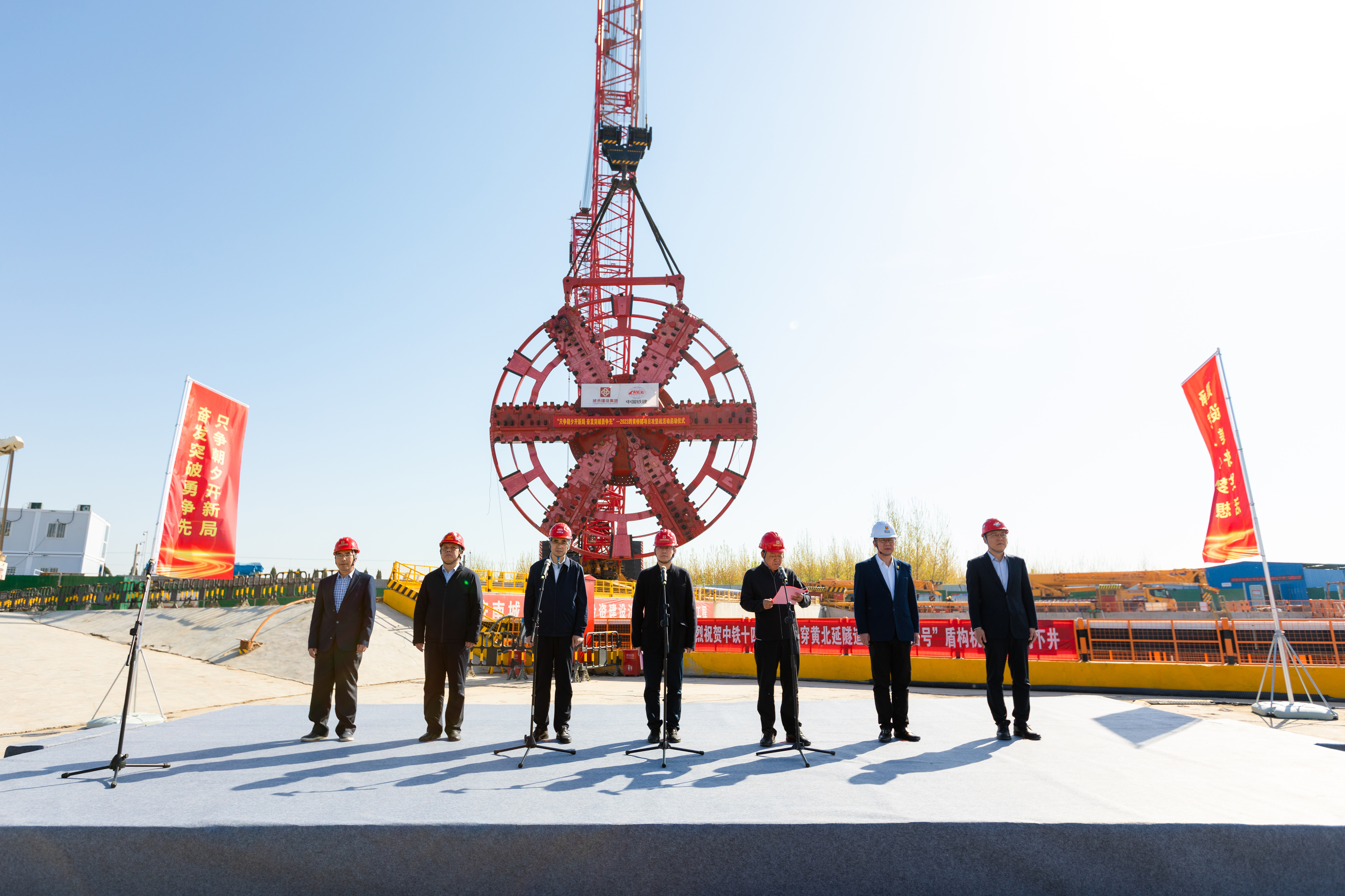 4月8日,建设集团在济泺路穿黄北延隧道盾构始发井现场举行“只争朝夕开新局,奋发突破勇争先”2023年跨黄桥隧项目攻坚战活动启动仪式。