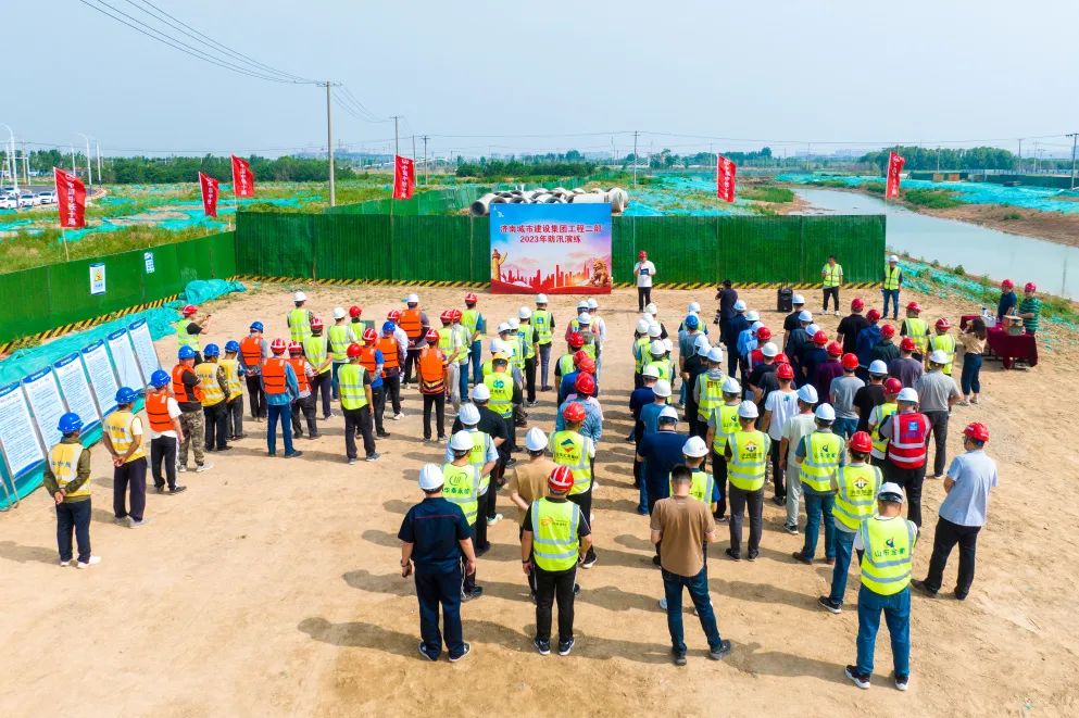 为进一步贯彻省、市、区及集团相关防汛工作要求,提高项目防汛抢险实战水平和应急处置能力,5月19日,建设集团工程二部在济南新旧动能转换起步区青宁沟流域生态治理及截污工程(一期)项目现场举行 2023年度防汛应急演练。
