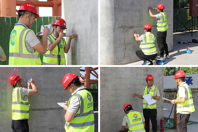 试验检测技能竞赛采取理论与实际操作相结合的考试形式。理论考试与实际操作紧密相关,主要考察混凝土抗压强度检测(回弹法)和钢筋保护层厚度检测(电磁感应法)。10支代表队,20名参赛选手参加竞赛。赛场上,参赛选手们严格按照标准要求,现场选择测区(测点),正确率定回弹设备,熟练地操作先进仪器设备,一丝不苟读取并记录数据、现场计算并处理数据、判定检测结果,充分展现了城建铁军在工程建设上精益求精,“质”在必得的匠人风采。