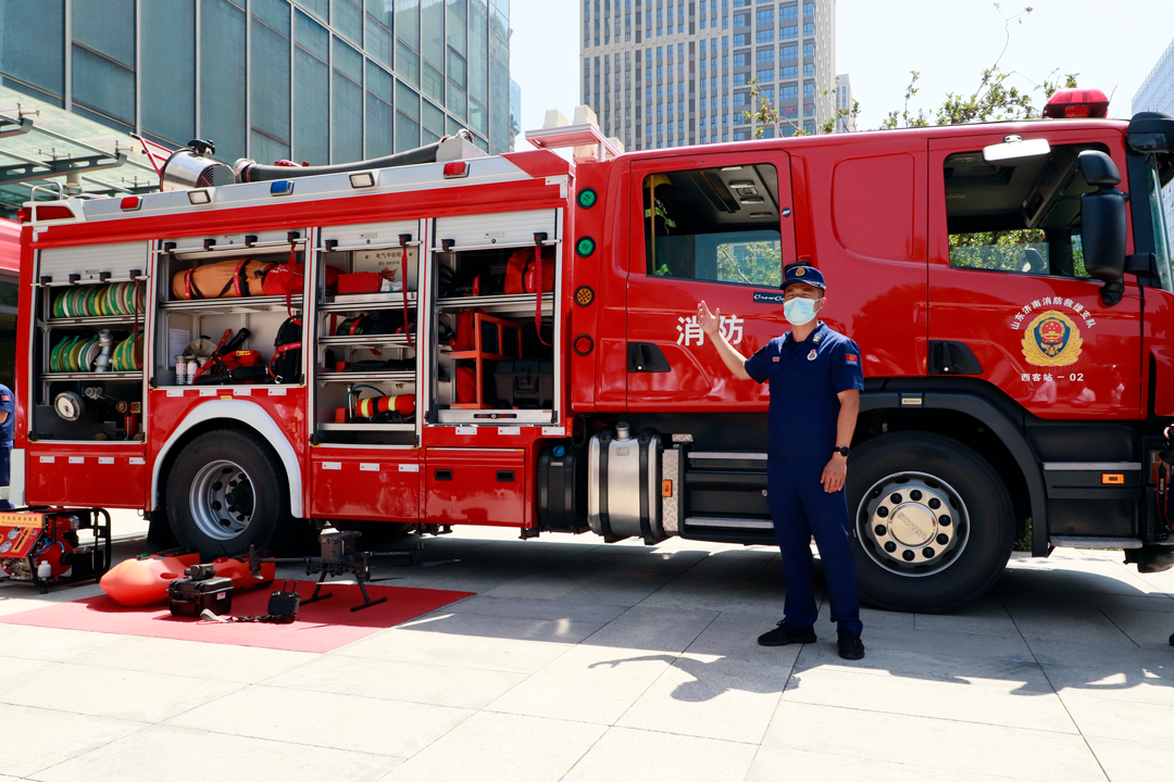 槐荫区消防救援大队对消防车上的各式装备器材及操作方法进行宣讲,帮助现场人员认识救援无人机、空气呼吸器、方位指示灯等装备器材。同时,在宣讲员手把手的教学中,现场人员熟练掌握了“拔、握、瞄、扫”的灭火器使用方法并进行了灭火实战演练。实战演练结束后,现场人员在安全生产承诺墙上签下名字,承诺将以身作则,坚守安全红线,遵守安全生产法。