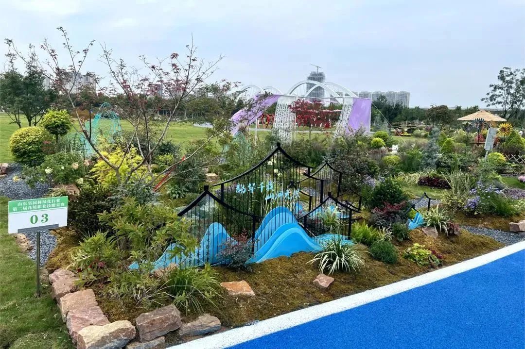 森泰园林参赛作品的设计灵感来源于元代画家赵孟頫的《鹊华秋色图》,设计理念以“鹊华千载,山河无垠”为主题,以山、水、诗词、花卉为载体,以国风方式展现“齐风鲁韵、花漾山东”,以花境打造山水文化田园。经过三天的花境施工,现场团队克服工期短、任务重等困难,始终坚持高标准的花境打造,用匠心营造美丽,展现出季相色彩丰富,特色浓郁的低碳生态景观。