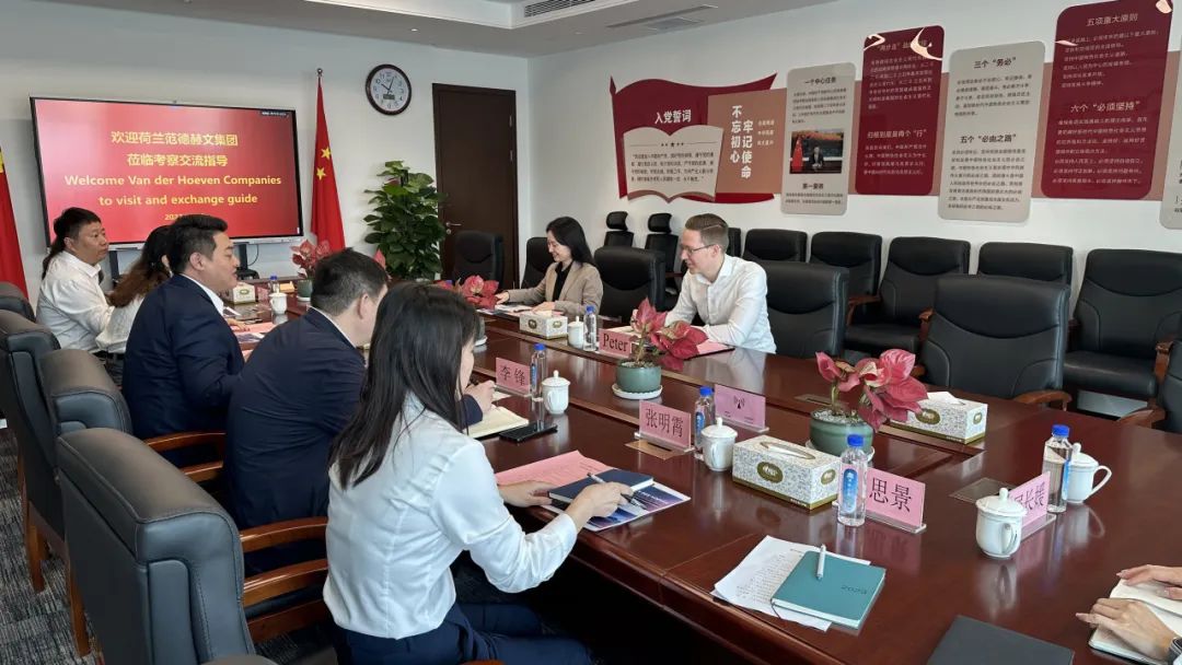 10月23日,荷兰Van der Hoeven(范德赫文,简称VDH)集团考察团到访城蚨国际贸易集团、济西农业公司,就一站式智能温室建设、先进设施农业及贸易业务进行座谈交流,VDH集团中国分公司副董事长陈文娟、销售总监Peter-Jan Snellink,建设集团所属城蚨国际贸易集团公司、济西农业公司相关负责同志参加活动。