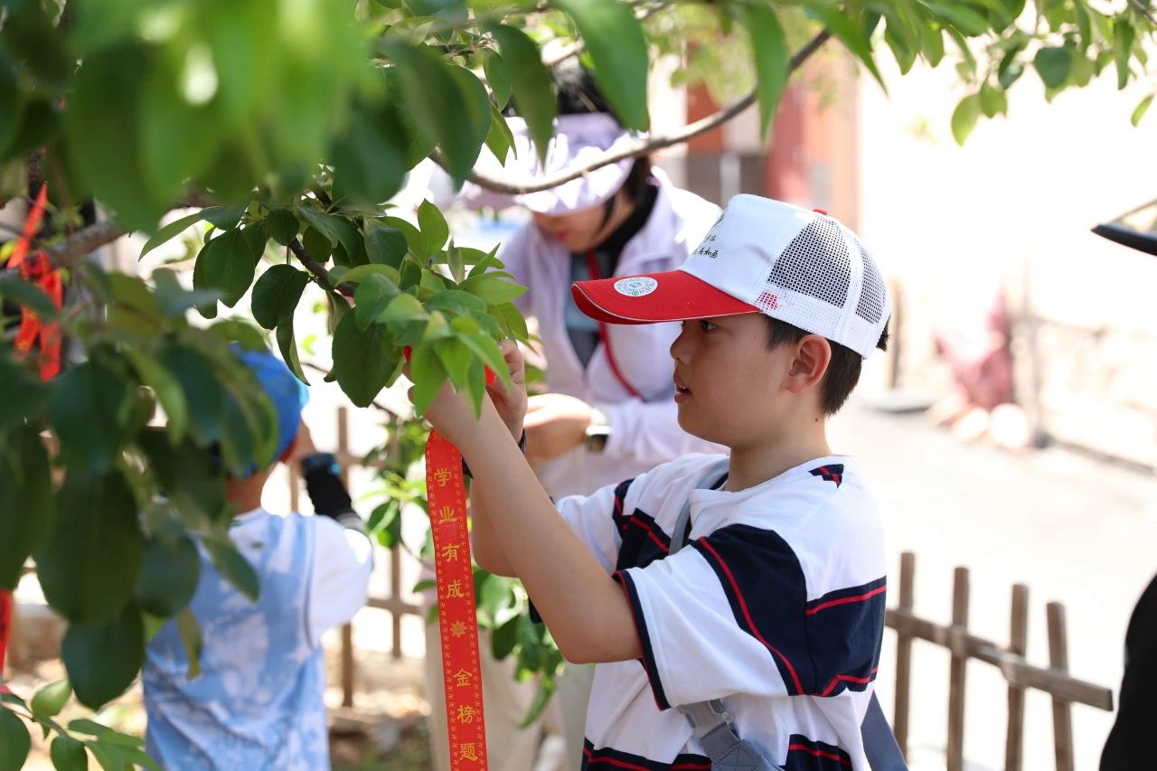 在状元沟村,孩子们聆听曹鸿勋状元故事,参观千年流苏树,制作并悬挂心愿卡片,在状元门前拍照打卡,了解了状元文化和中国古代科举制度知识,感受了状元沟村崇文重教的传统风俗。