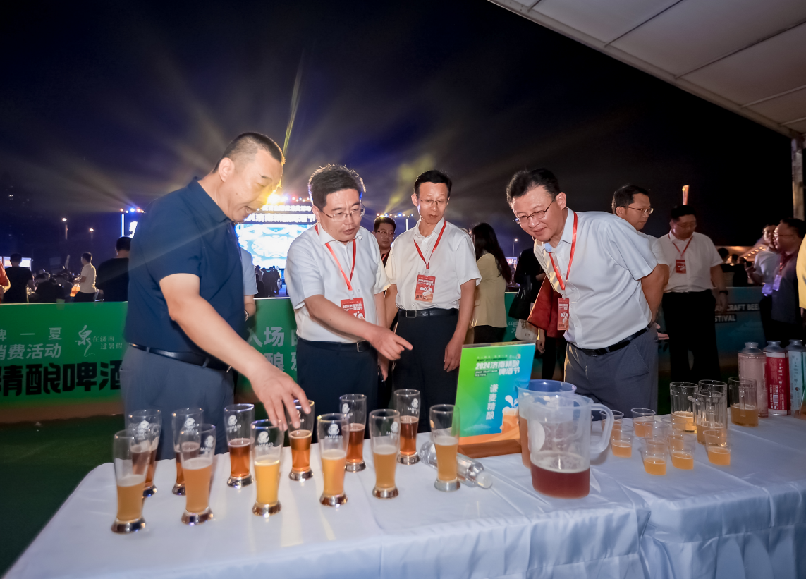 开幕式上,济南市委宣传部分管日常工作副部长、市文明办主任孙世会和槐荫区委书记孙常建开启第一桶酒,并与济南市人民政府办公厅副主任谭征,济南广播电视台党委书记、台长丁晓红,济南市商务局党组副书记、副局长王志刚,ok138cn太阳集团古天乐副总经理杨晓东,山东国际会展集团负责同志,山东喜啤士精酿品牌运营管理有限公司负责同志共同举杯发出诚挚邀请,欢迎四海宾朋“泉”在济南过暑假,为期一个月的“泉城购”夏日主题促消费活动暨2024济南精酿啤酒节正式启幕。