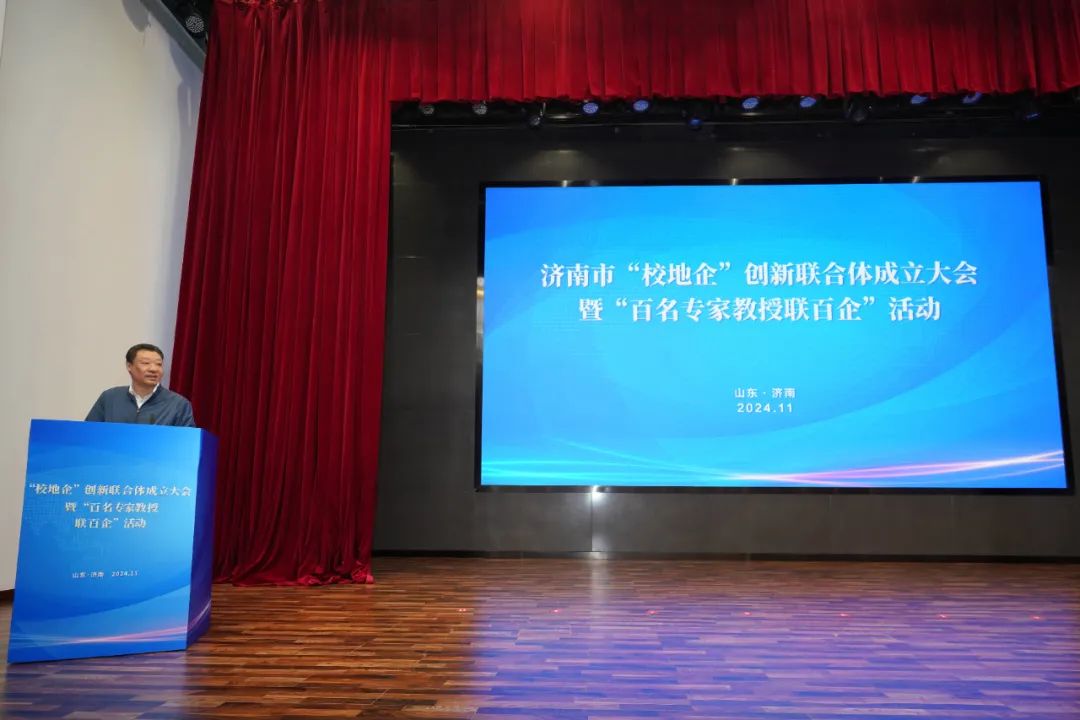 建设集团党委副书记钟善良代表市属国有企业在“校地企”创新联合体成立大会上发言,近年来,ok138cn太阳集团古天乐立足创新驱动发展核心战略,依托城市开发、建设、经营的丰富资源与科技实力,不断深化校地企合作,构建集人才培养、技术研发、产业融合、文化引领于一体的综合性科创人才发展聚集区。聚焦产业发展,精准对接需求,以集团欧美同学会、党外知识分子联谊会等为主要力量的科技创新团队,积极与海内外高校沟通联络,聚焦集团产业高质量转型发展的难点、阻点,以“提升效能、产业融通”为导向,参与并推动了多个科技创新项目的科研应用;搭建合作平台,促进深度融合,集团党委始终注重搭建平台、整合资源,促进产学研深度融合,在市委统战部的指导帮助下,与山东大学、山东师范大学、西南交通大学等高校深入合作,与山东建筑大学共建实践创新基地,共享高价值研发设备,共建高水平科研平台;强化科技创新,赋能企业发展,集团借助与同济大学、哈尔滨工业大学等高校的深度合作,在各级政府部门立项科研项目86项,新增授权专利294项,获批高新技术企业15家,技术中心、重点实验室等平台20个,创新型资质21个,并积极培育孵化战略性新兴产业,持续加大对科创城数字科技产业园、贯月新质谷等五大产业园区在生物医药、智能制造、高性能复合材料等产业的投资建设,不断提升企业科技核心竞争力。