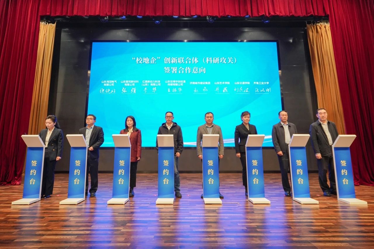 会上,建设集团与齐鲁工业大学、山东交通学院、山东艺术学院等7家单位签订合作意向书;集团所属山东金宇信息科技集团有限公司作为“校地企”创新联合体(科研攻关)成员单位进行路演。