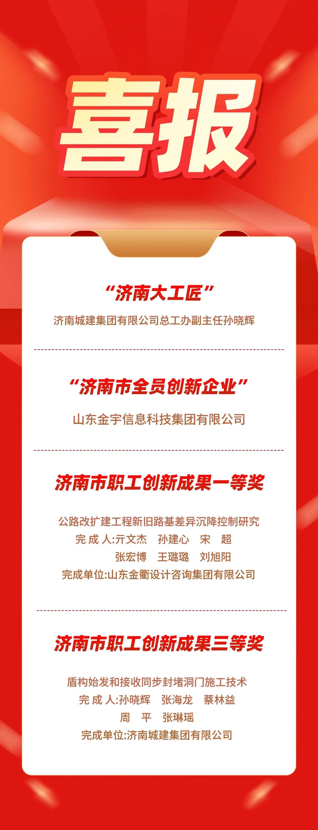 近日,济南市总工会发布《关于公布2024年度 “济南工匠”的通知》《关于公布2024年度泉城职工全员创新竞赛结果的通知》,建设集团多个集体及个人获表彰。