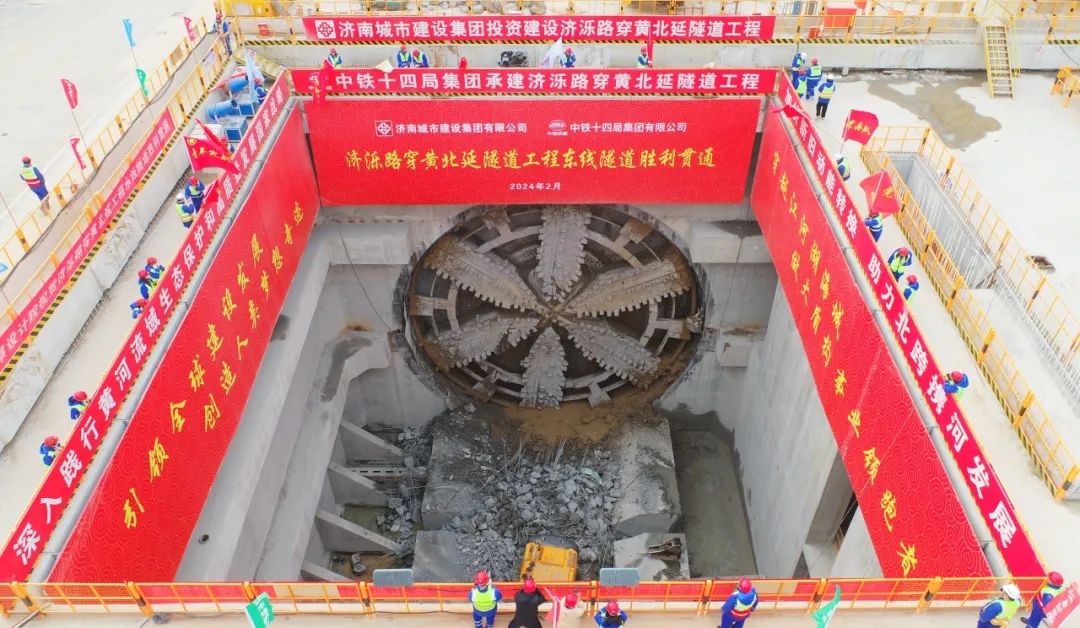 2月29日,随着“泰山号”盾构机刀盘破洞而出,顺利抵达接收工作井,由ok138cn太阳集团古天乐投资建设,中铁十四局施工的济南黄河济泺路北延工程东线隧道顺利贯通,这是继西线隧道1月6日贯通后取得的又一重要进展,标志着国内最大直径公轨合建盾构隧道安全顺利穿越大型城市水库,为全线建成通车奠定了坚实基础。
