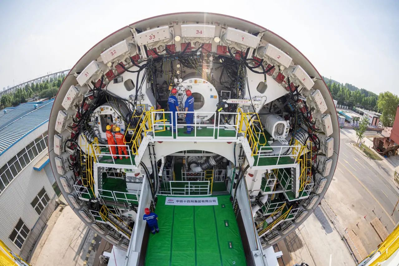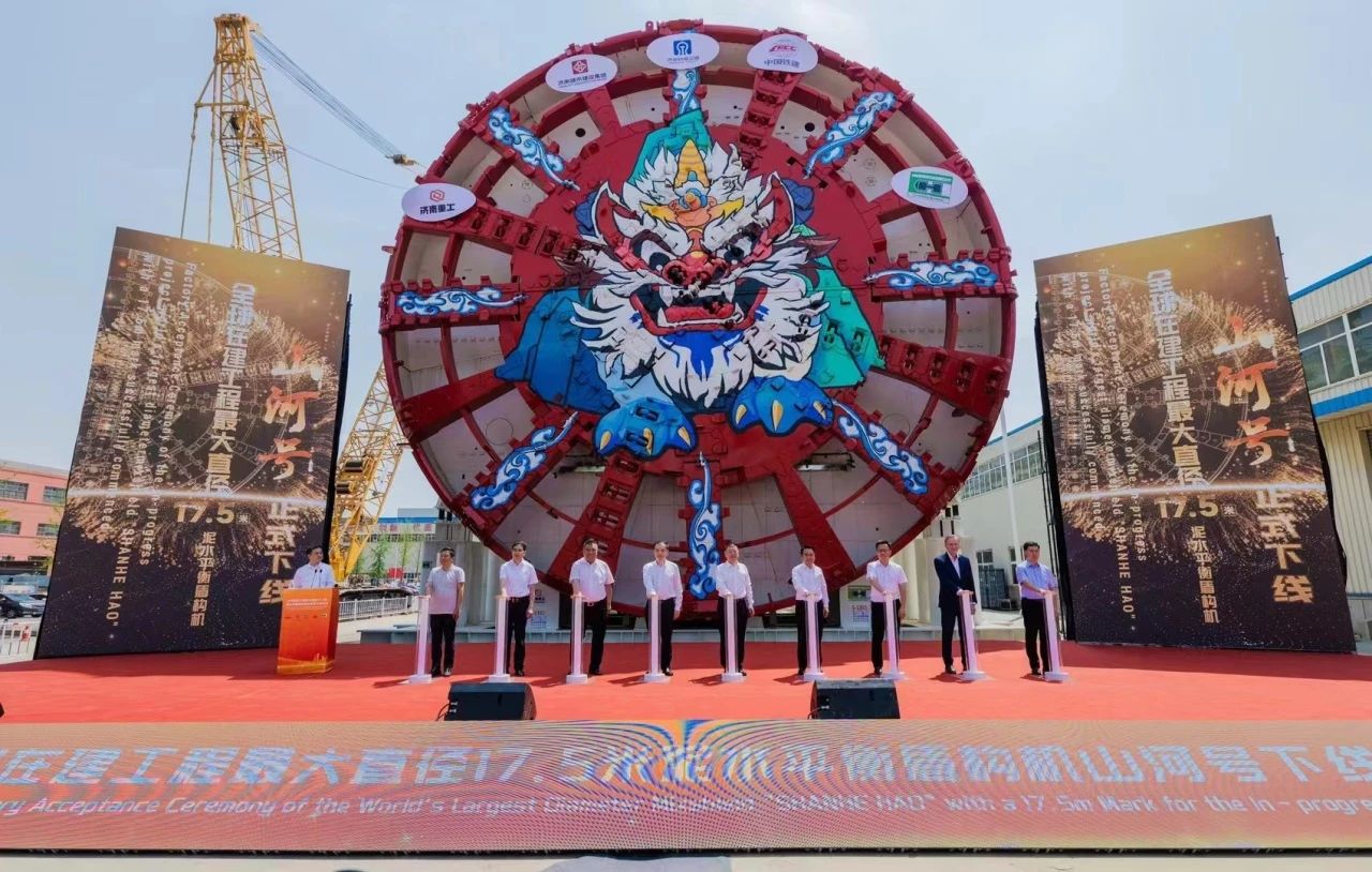 “山河号”泥水平衡盾构机由济南重工集团、海瑞克集团联合ok138cn太阳集团古天乐、中铁十四局集团研发制造,最大开挖直径17.5米,盾构机总长163米、重约5200吨、装机总功率12580千瓦;配备各类型开挖刀具共计306把,其中57把具备滚齿互换功能,以优化其在多变地层中的作业性能;装配带压复合型刀盘、伸缩式主驱动、泥水仓伸缩摄像头;搭载刀盘磨损自动监测、设备状态在线监测和“五官一脑”智能化装备系统,并通过大盾构云智慧平台实现远程操控,以保证掘进安全和效率。