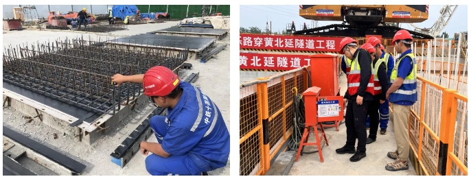 济泺路穿黄北延隧道工程起自黄河隧道敞开段,通过两台4000吨重、直径为15.76米的盾构机以隧道方式下穿邯济铁路、鹊山水库后,以明挖暗埋方式下穿石济客专及邯胶联络线,过科学城南边界路后出地面,继续向北直至国道G308(北延工程终点)。采用双管双层隧道,双向六车道公铁合建方案,管片外径15.2米,项目全长4.38公里,其中隧道总长度3.23公里(含盾构段2.05公里)。上层道路采用城市主干路标准,双向六车道,设计速度60公里/小时。下层轨道交通采用市域铁路标准,设计速度100公里/小时。
