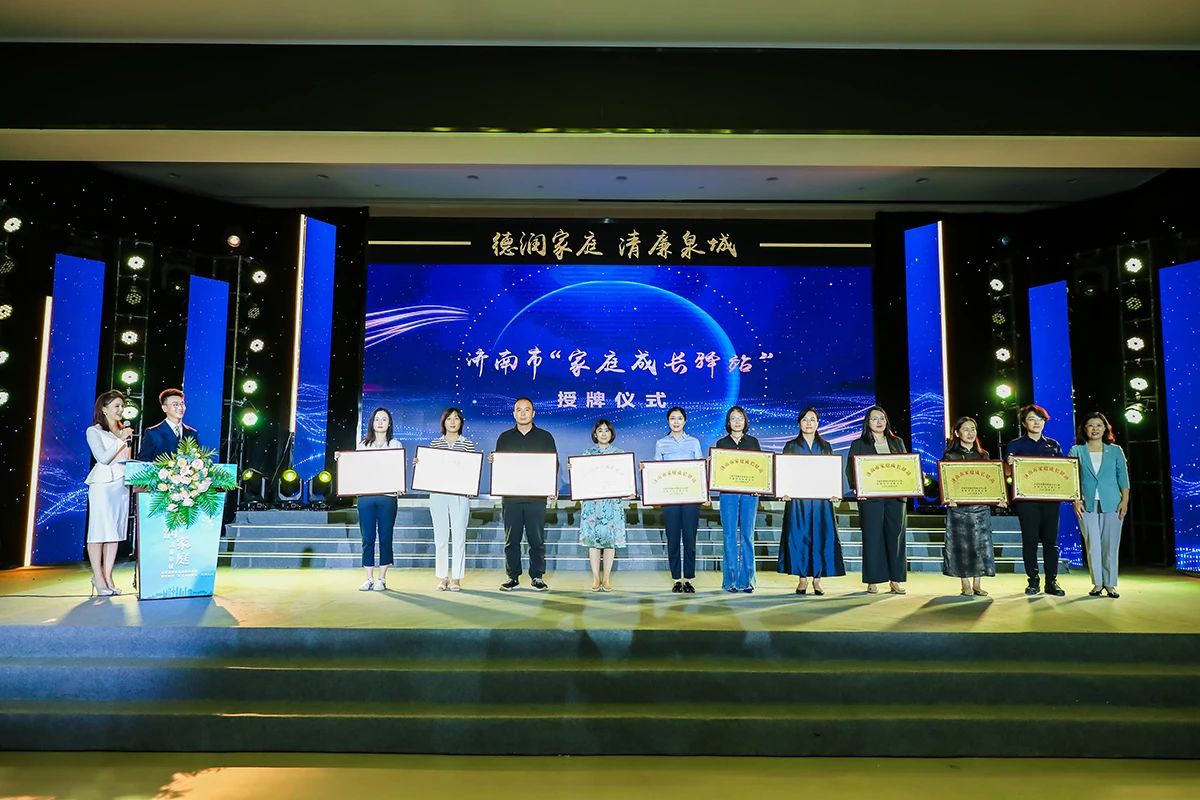 市妇联党组书记、主席田迎为首批命名的“家庭成长驿站”单位授牌。