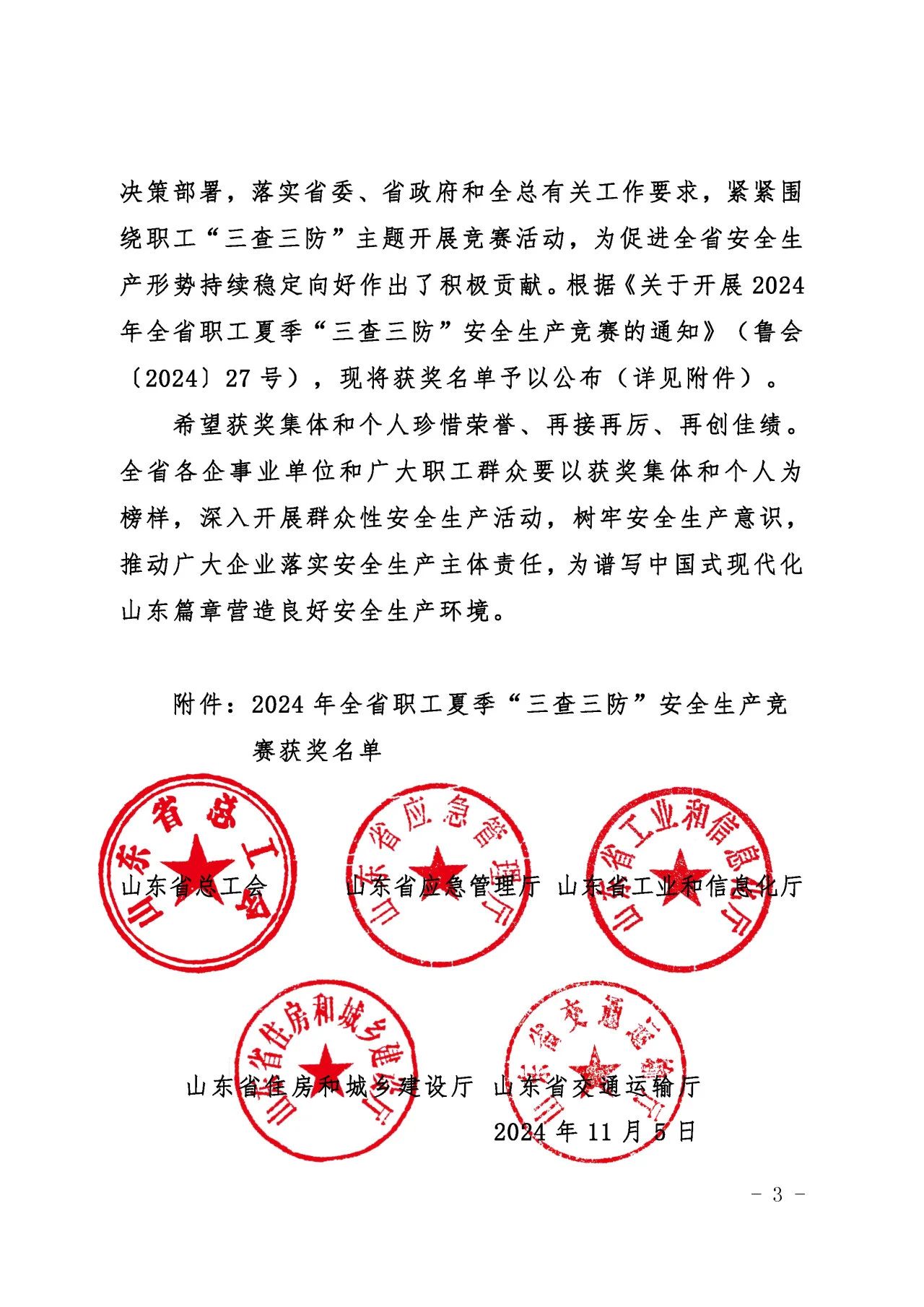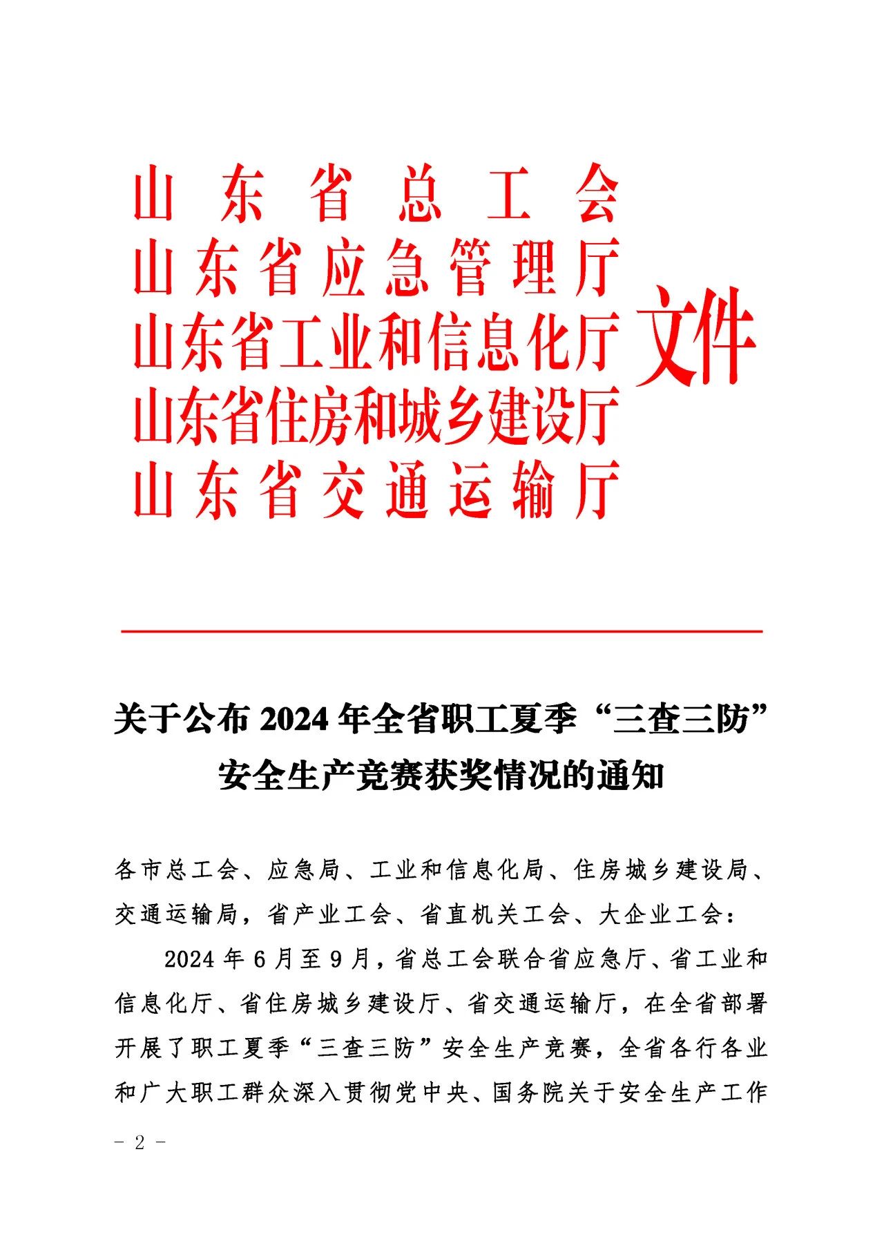 近日,山东省总工会、山东省应急管理厅、山东省工业和信息化厅、山东省住房和城乡建设厅、山东省交通运输厅联合发布了《关于公布2024年全省职工夏季“三查三防”安全生产竞赛获奖情况的通知》,ok138cn太阳集团古天乐质量安全部积极响应上级主管部门的号召,按照集团党委的科学部署,全面而深入地开展了各项安全专题活动,荣获“三查三防”安全生产竞赛优胜班组荣誉称号。