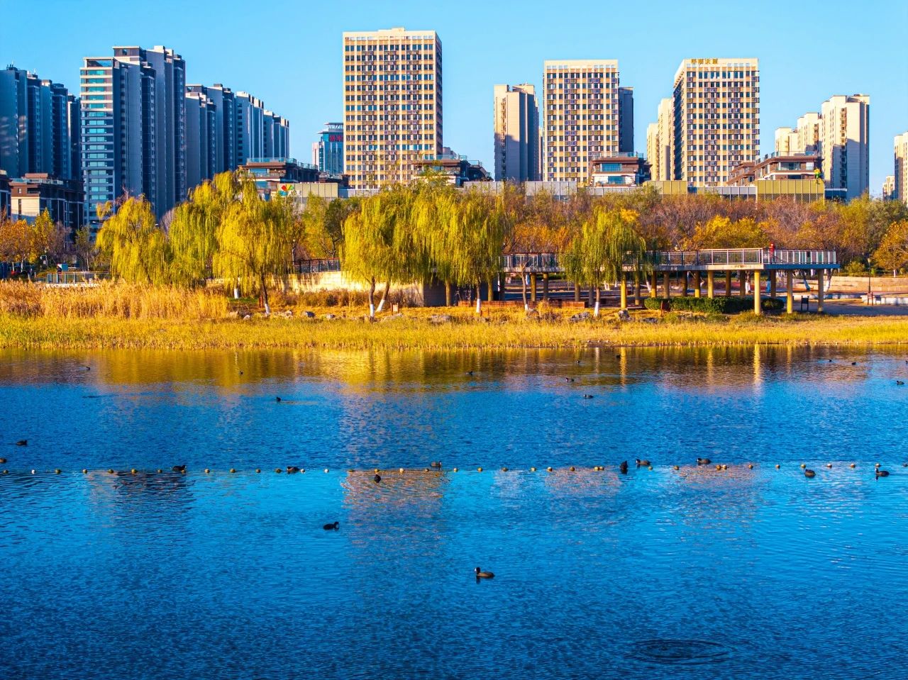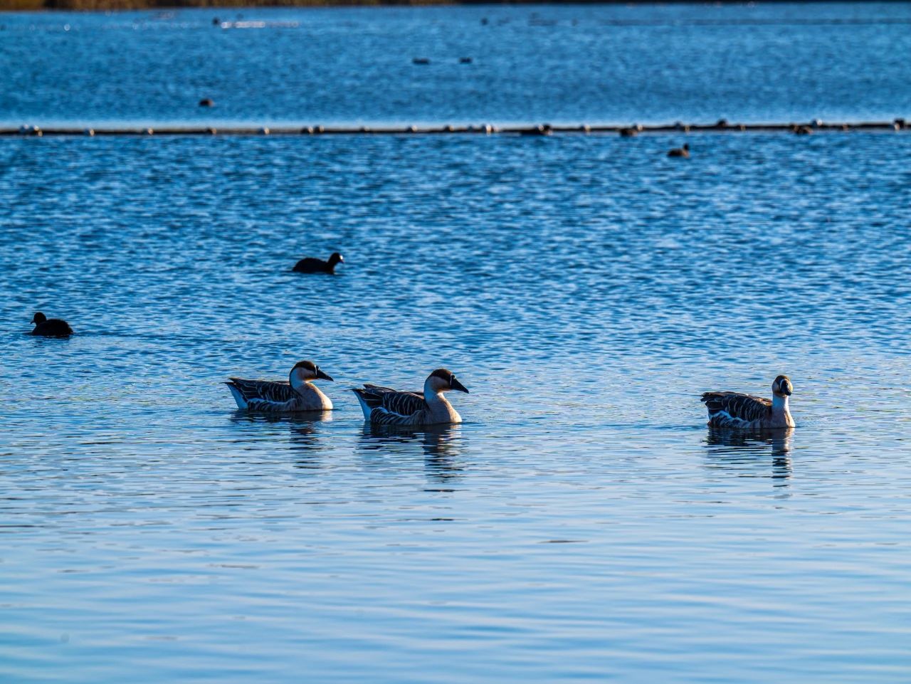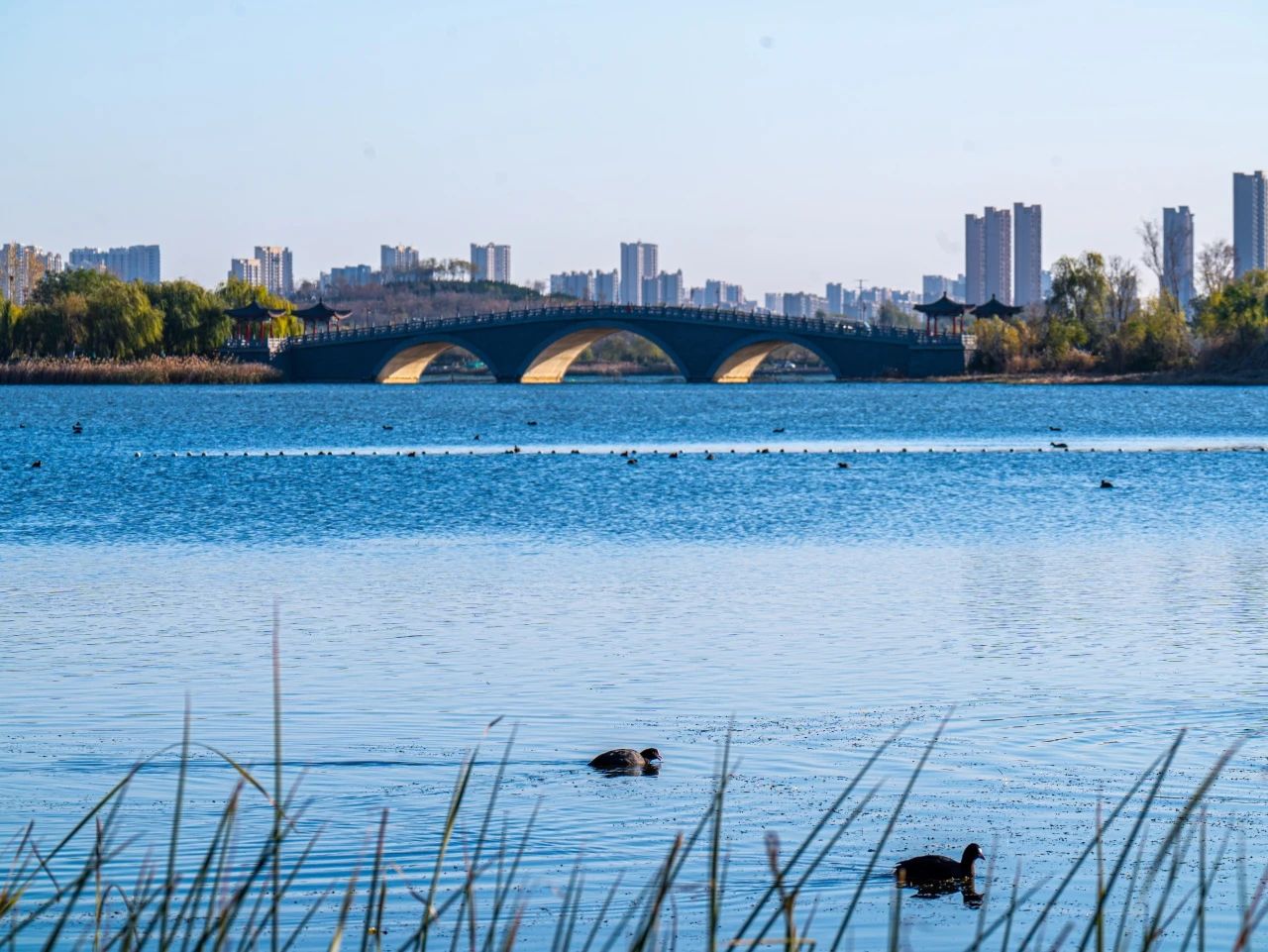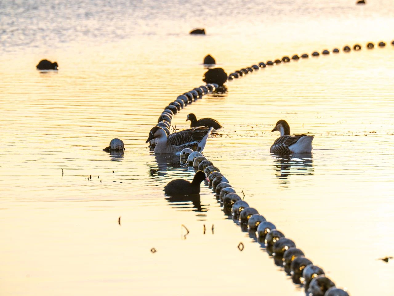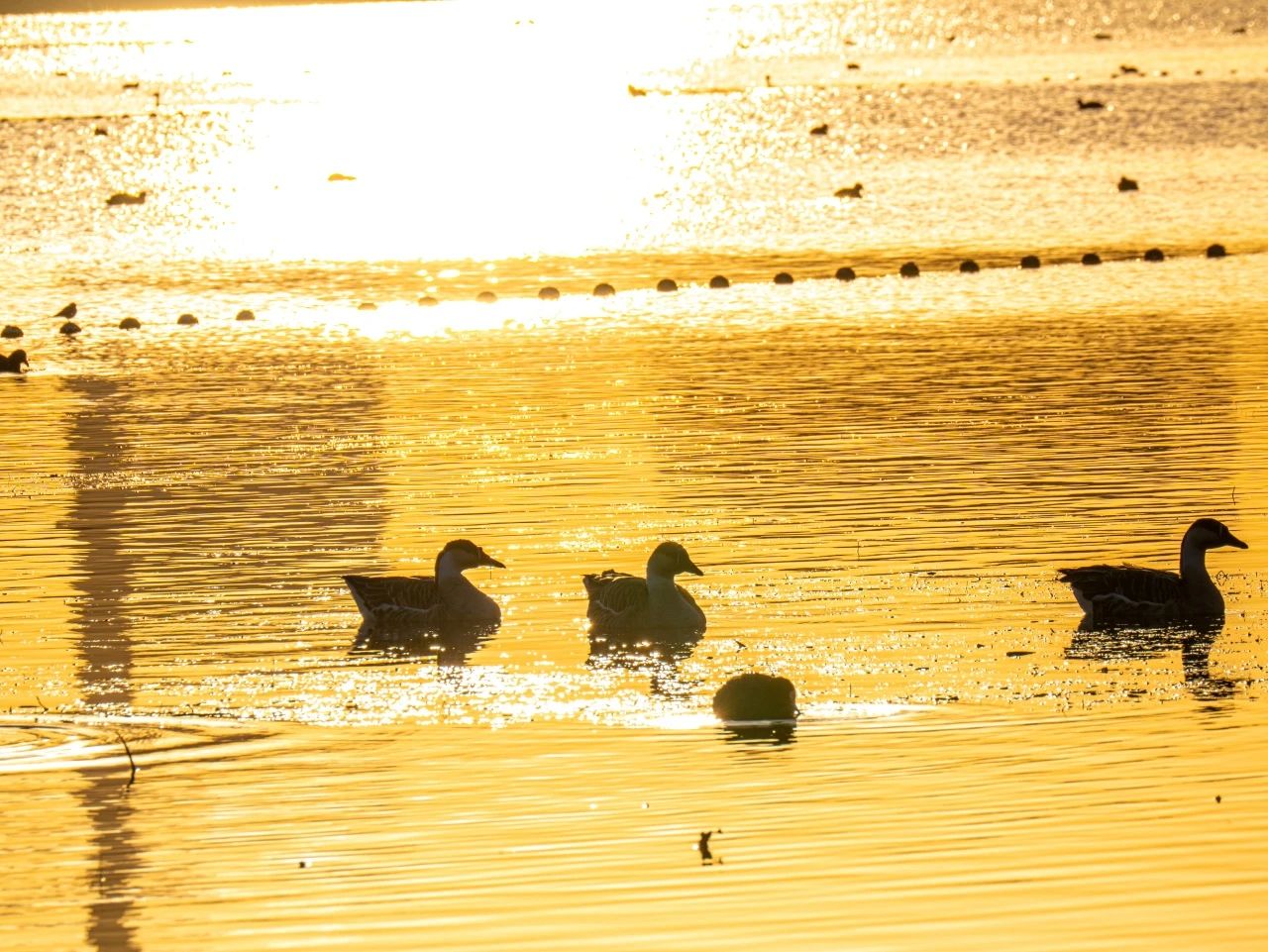 羽翼轻展映寒晖,群鸟嬉戏逐水归。秋末冬初,上百只国家二级保护动物白骨顶鸡如约来到济南华山景区栖息,赴冬日的约定。