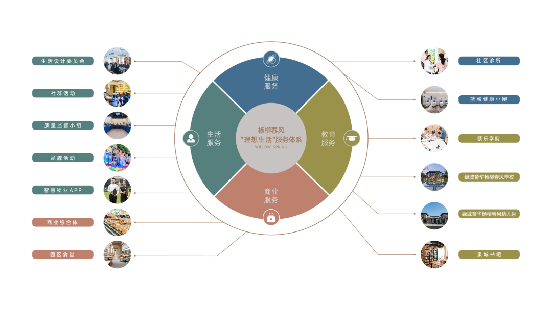 杨柳春风八载造城之路,成功构建并持续优化涵盖教育、商业、生活、健康四大维度的全景生活服务体系,致力于为业主提供全生命周期、全场景服务。通过蓝熙健康小屋、社区诊所,为业主量身定制个性化健康管理体验服务。