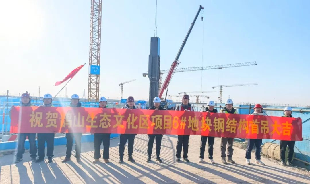 1月10日,济南起步区鹊山生态文化区(一期)5#、6#地块项目首件钢结构件吊装完成,标志着该项目正式进入了钢结构主体施工的关键阶段。
