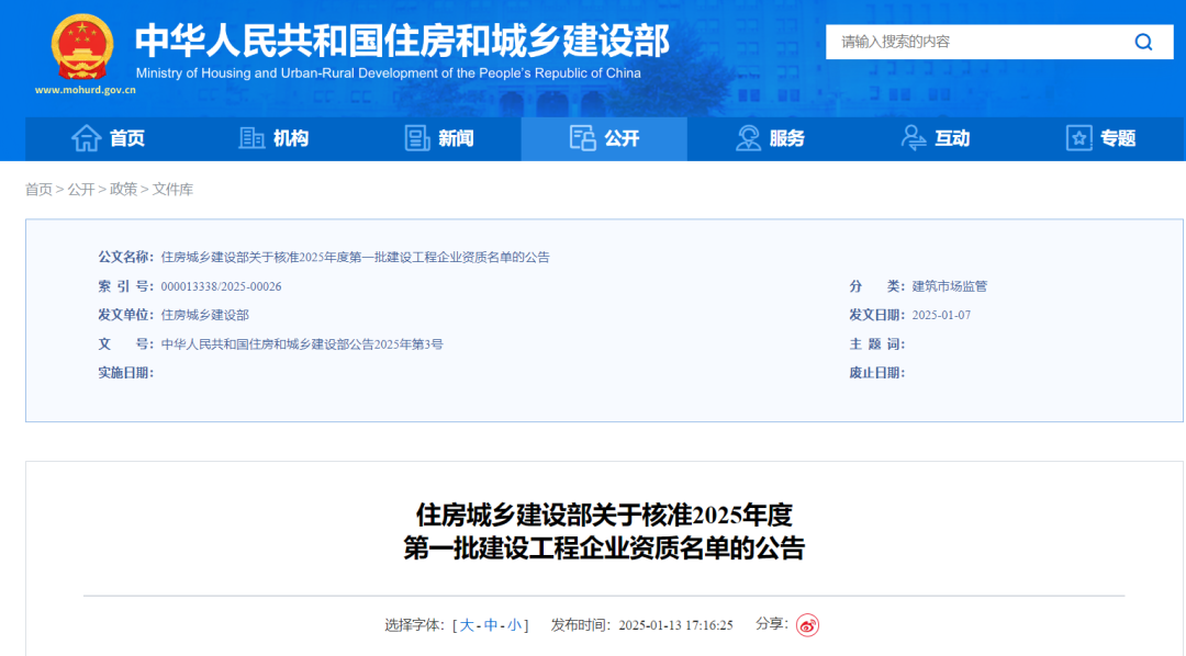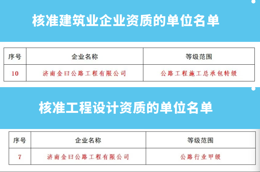 1月13日,住房和城乡建设部发布《住房城乡建设部关于核准2025年度第一批建设工程企业资质名单的公告》,ok138cn太阳集团古天乐所属济南金曰公路工程有限公司获评公路工程施工总承包特级资质和工程设计公路行业甲级资质。
