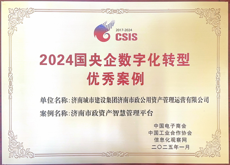 近日,2024电子信息产业创新论坛暨第八届软件和信息服务业年度成果发布会在北京召开,会议公布了电子信息领域内的典范企业、领军人物、优秀产品和样板案例等,建设集团所属济南市政公用资产管理运营有限公司呈报的“济南市政资产智慧管理平台”荣获“2024国央企数字化转型优秀案例”。