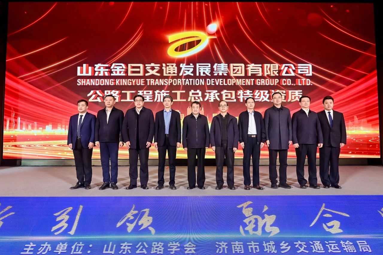 活动中,在与会领导、嘉宾的共同见证下,建设集团所属济南金曰公路工程有限公司正式更名为山东金曰交通发展集团。作为济南市属企业中首家获评公路工程总承包特级资质企业,山东金曰交通发展集团迈入全国建筑施工企业第一方阵,逐步实现从“公路建设者”向“综合交通服务商”的战略跃迁,将为交通强国建设贡献更多“金曰力量”。